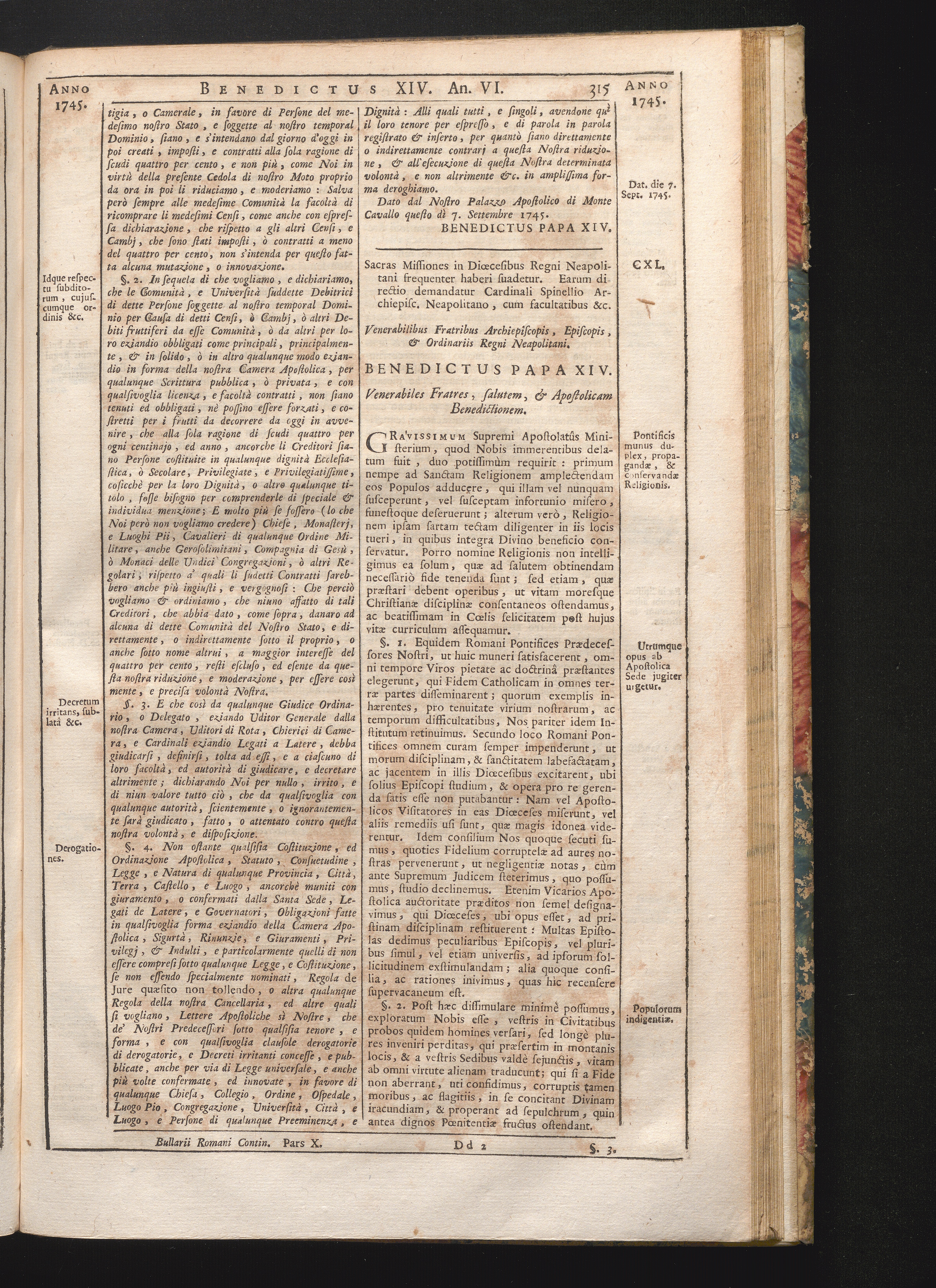 CXL. Sacras Missiones in Diœcesibus Regni Neapolitani frequenter haberi suadetur:[...]