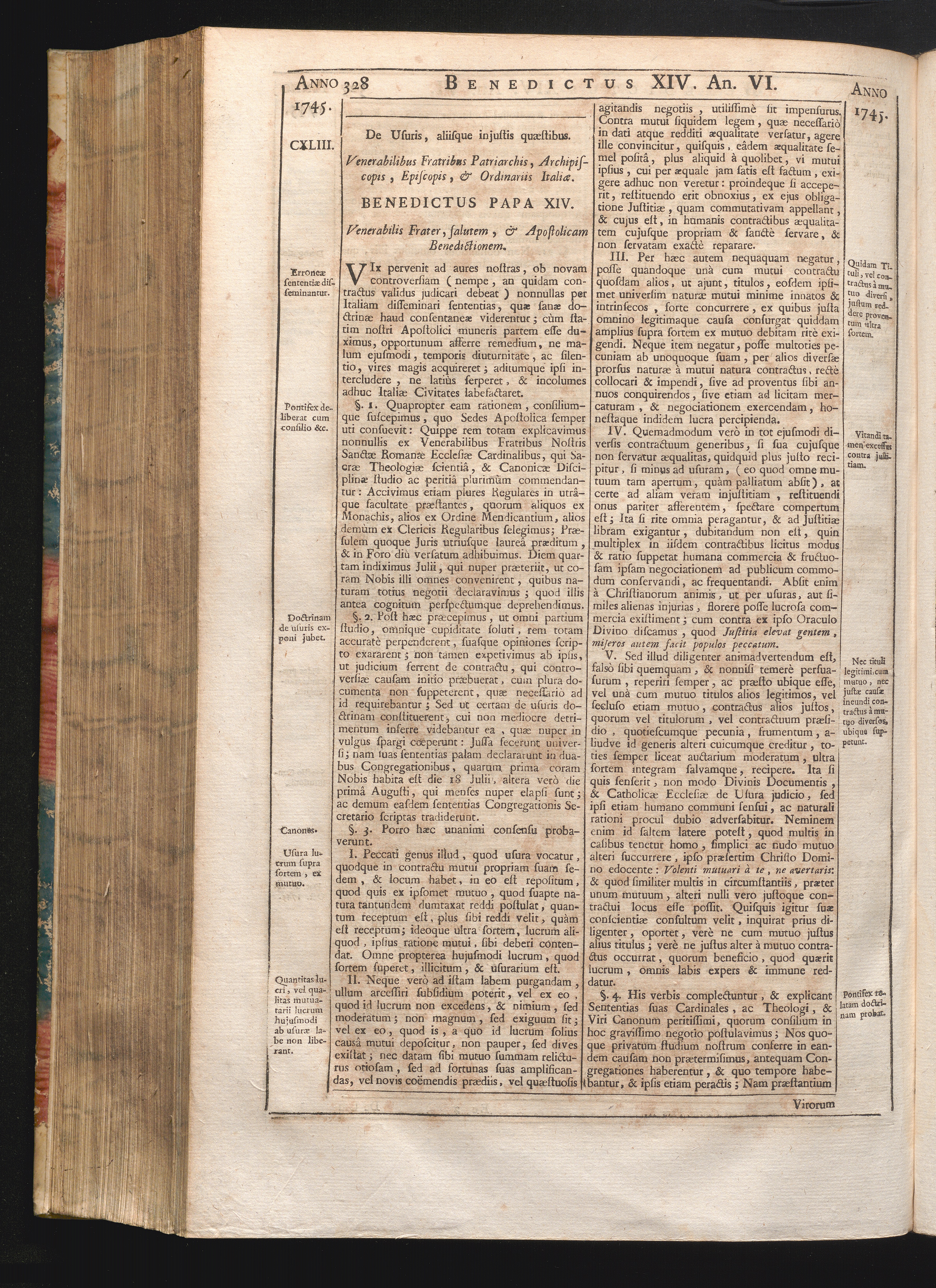 CXLIII. De usuris, aliisque injustis quæstibus. 1. Novembris.