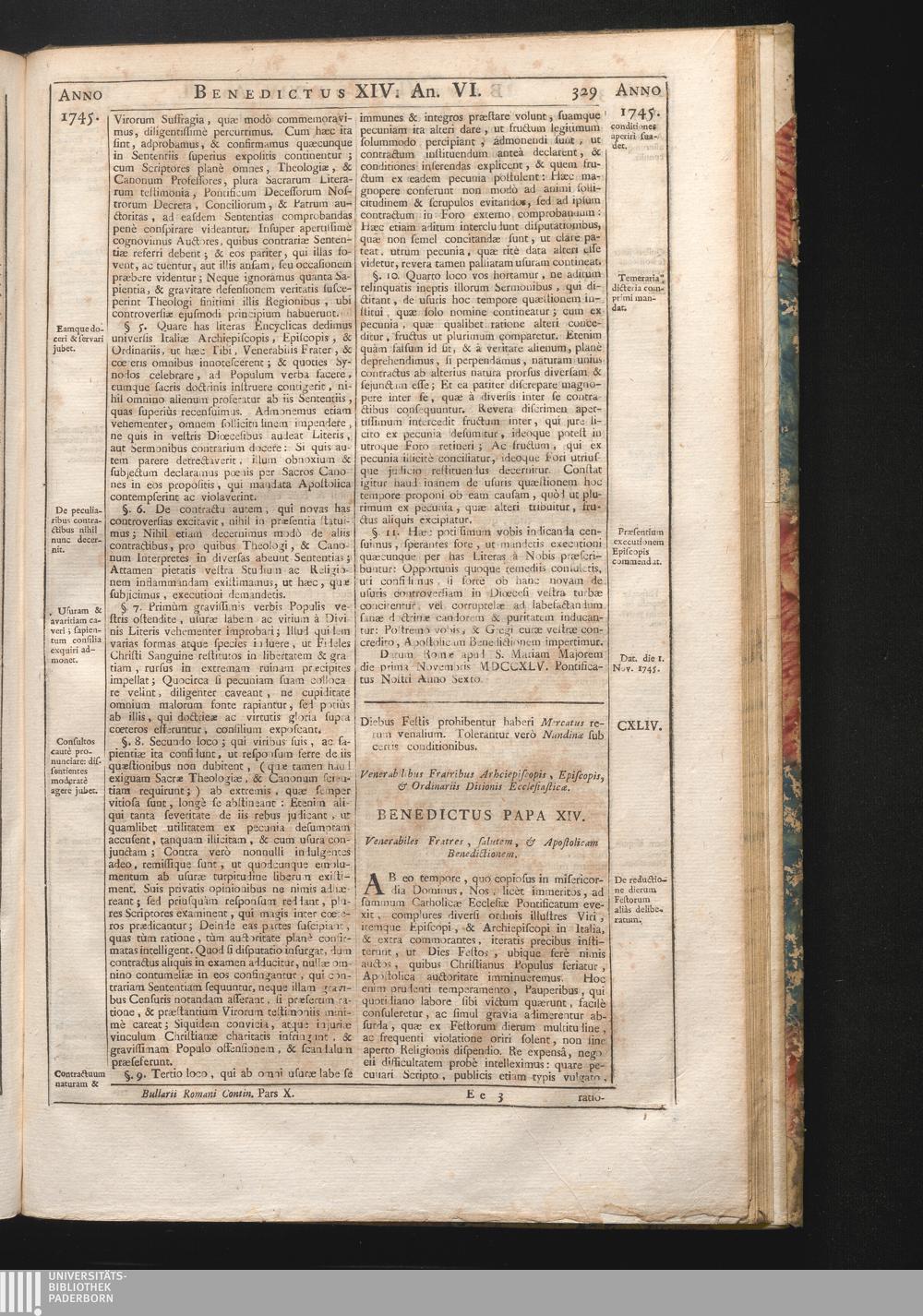 Tomus Decimus-Sextus = Continuationis Pars Decima (1752) Complectens Constitutiones Benedicti XIV. ab initio Pontificatus usque ad Annum 1746