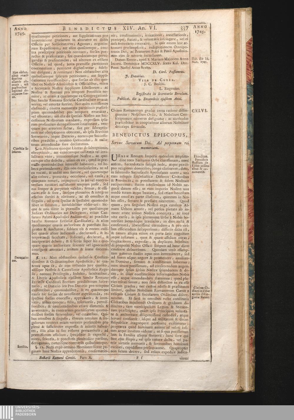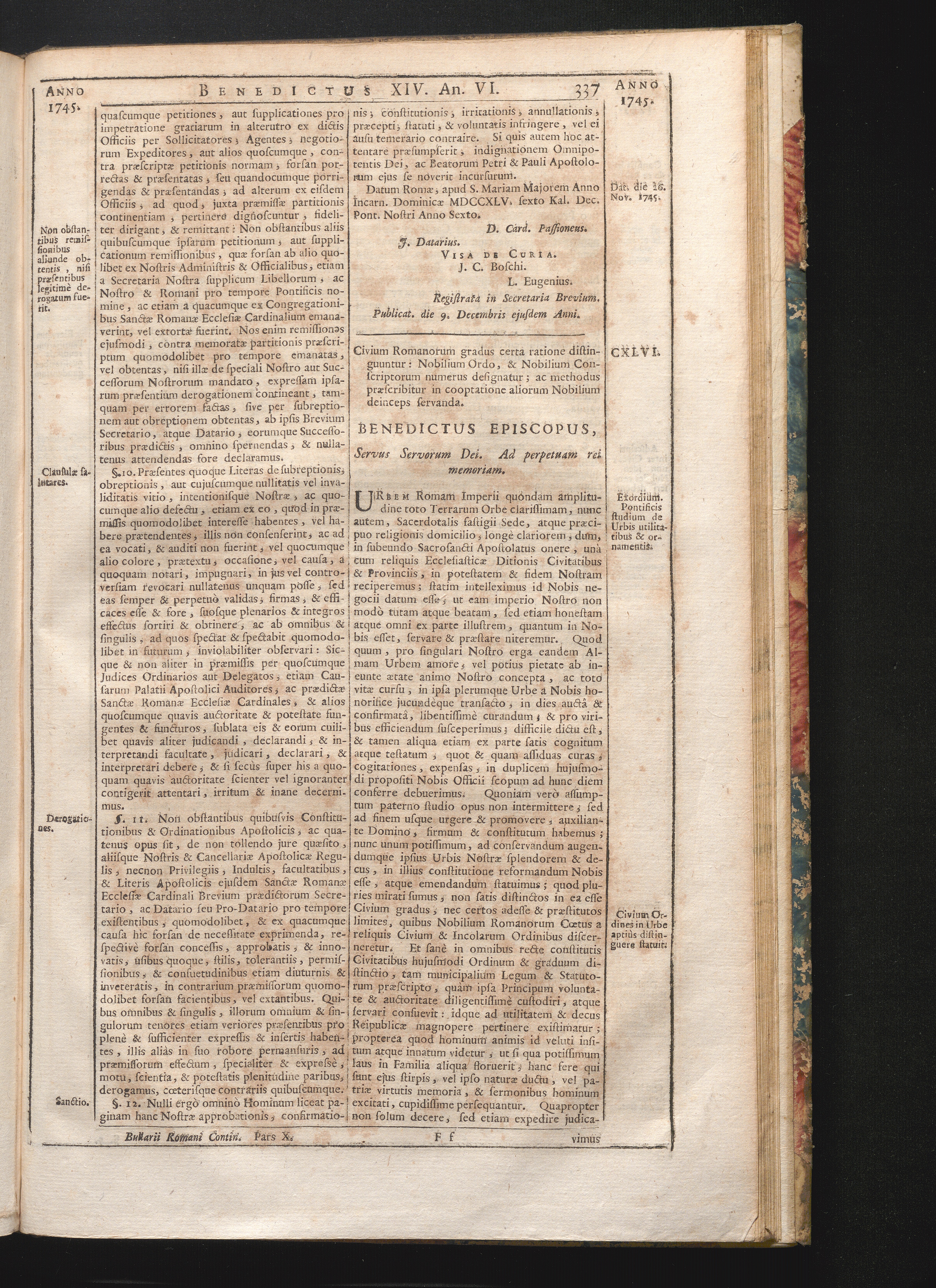 Tomus Decimus-Sextus = Continuationis Pars Decima (1752) Complectens Constitutiones Benedicti XIV. ab initio Pontificatus usque ad Annum 1746
