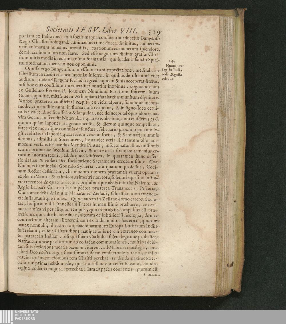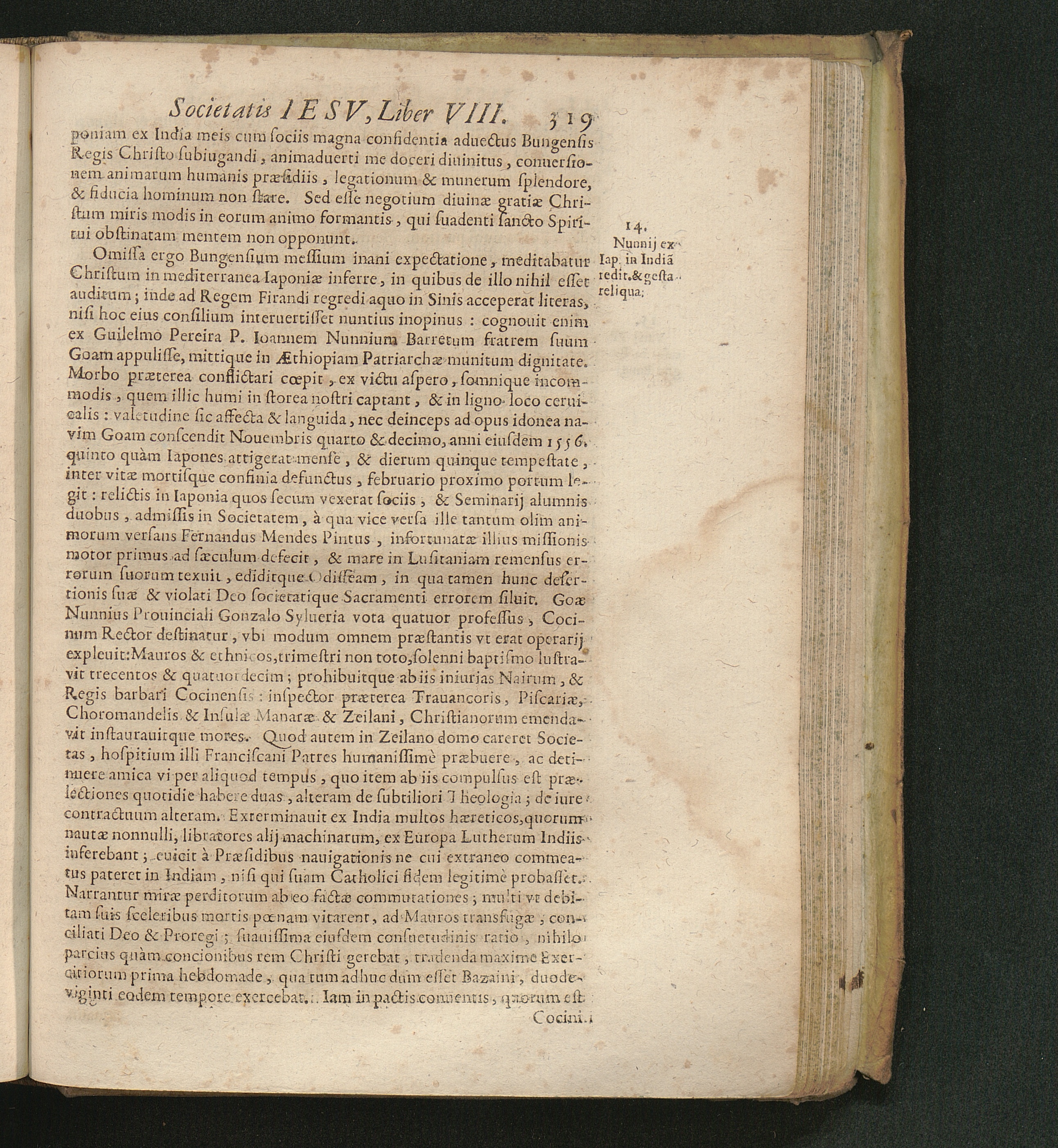 14. Nunnij ex Iap. in India[m] redit. & gesta reliqua.