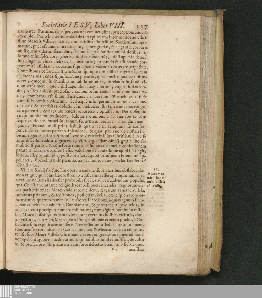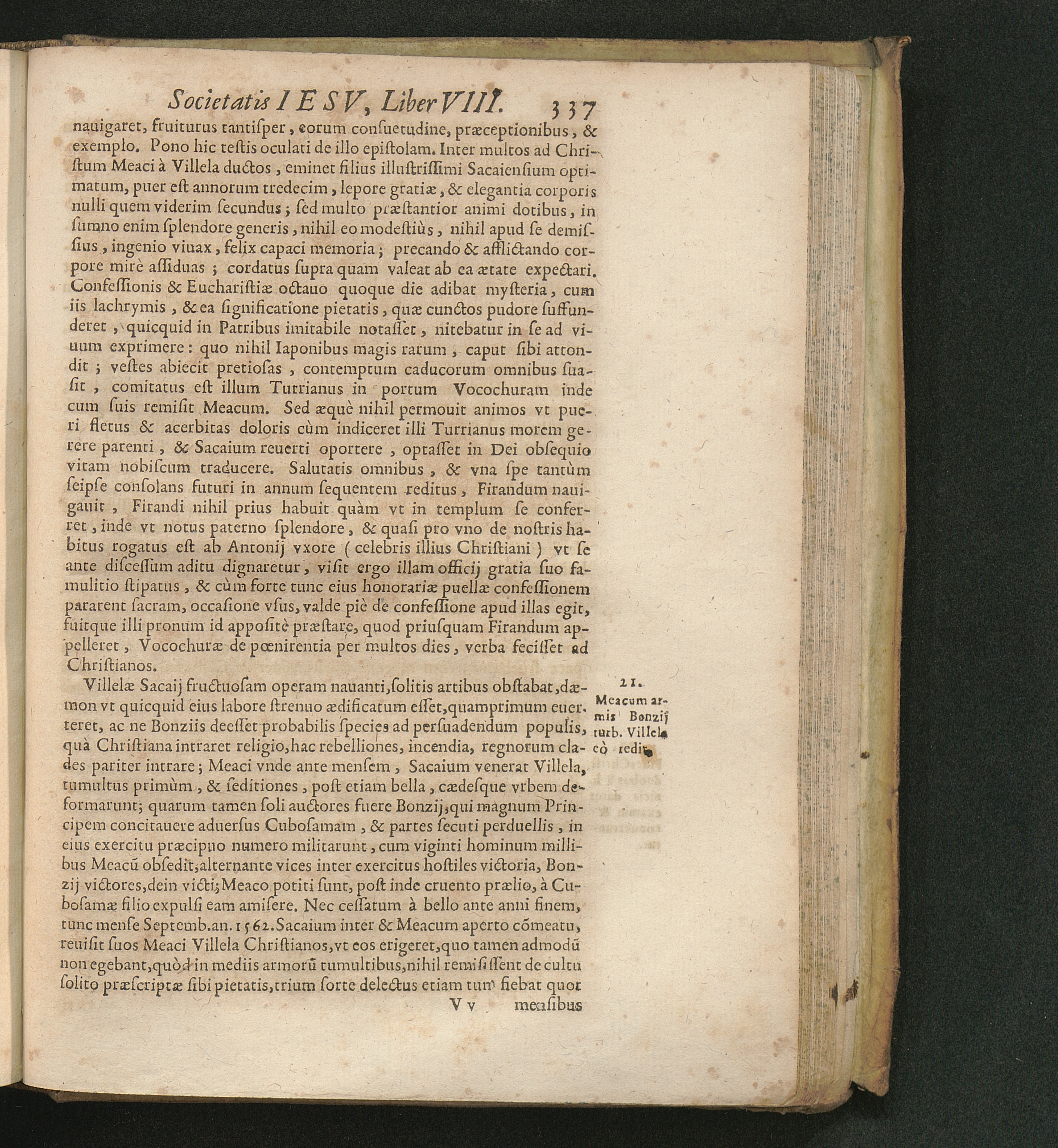 21. Meacum armis Bonzij turb. Villela eò redit.
