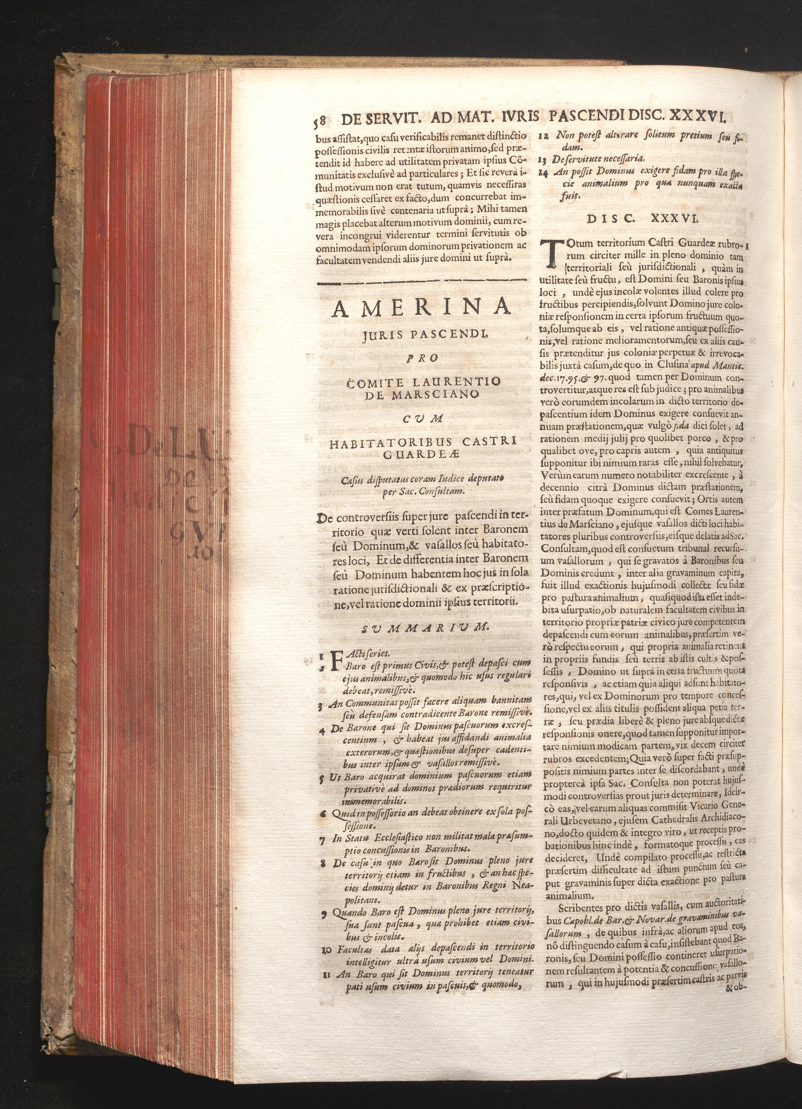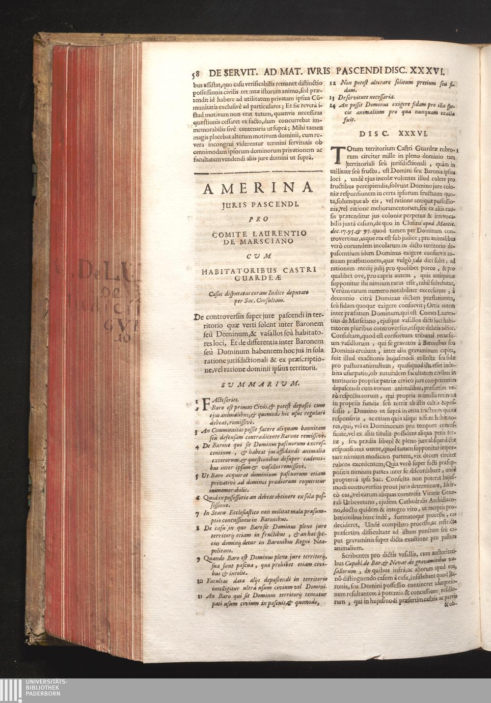 Disc. XXXVI. Amerina juris pascendi. De controversiis super jure pascendi in territorio,[...]