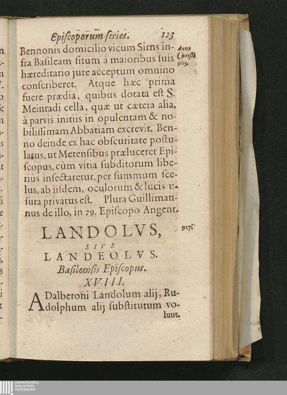 Basilea Sacra Sive Episcopatvs Et Episcoporvm Basileensivm Origo Ac Series : Reverendissimo, Et Illvstrissimo Principi Ioanni Conrado Ad Sacram Inavgvrationem, A Collegio Bruntrutano Societatis Iesv, singularis observantiae & honoris ergò Dicata, Consecrata / [Claudius Sudan]