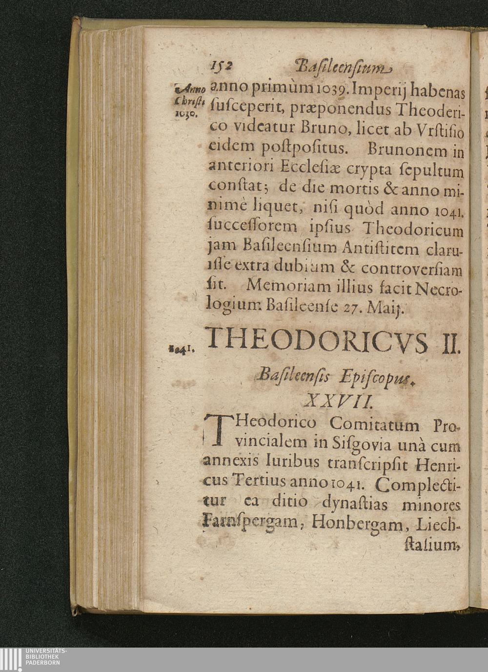 Basilea Sacra Sive Episcopatvs Et Episcoporvm Basileensivm Origo Ac Series : Reverendissimo, Et Illvstrissimo Principi Ioanni Conrado Ad Sacram Inavgvrationem, A Collegio Bruntrutano Societatis Iesv, singularis observantiae & honoris ergò Dicata, Consecrata / [Claudius Sudan]