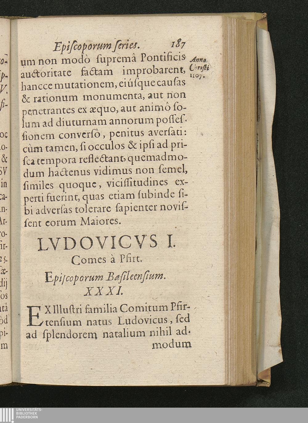 Basilea Sacra Sive Episcopatvs Et Episcoporvm Basileensivm Origo Ac Series : Reverendissimo, Et Illvstrissimo Principi Ioanni Conrado Ad Sacram Inavgvrationem, A Collegio Bruntrutano Societatis Iesv, singularis observantiae & honoris ergò Dicata, Consecrata / [Claudius Sudan]