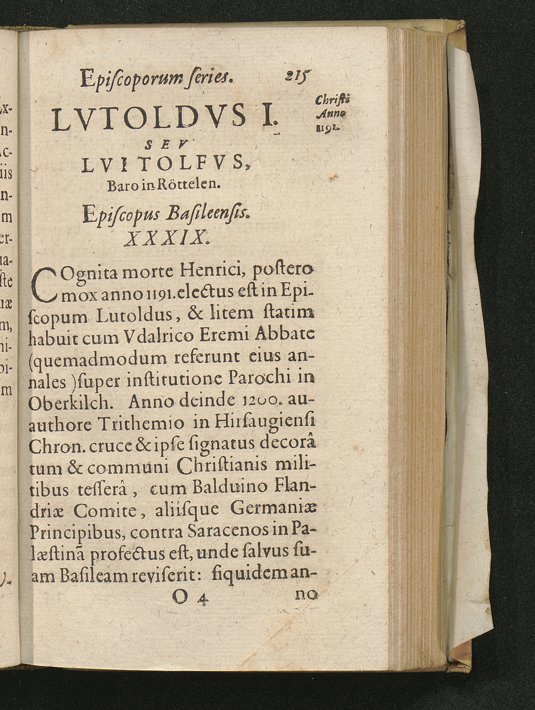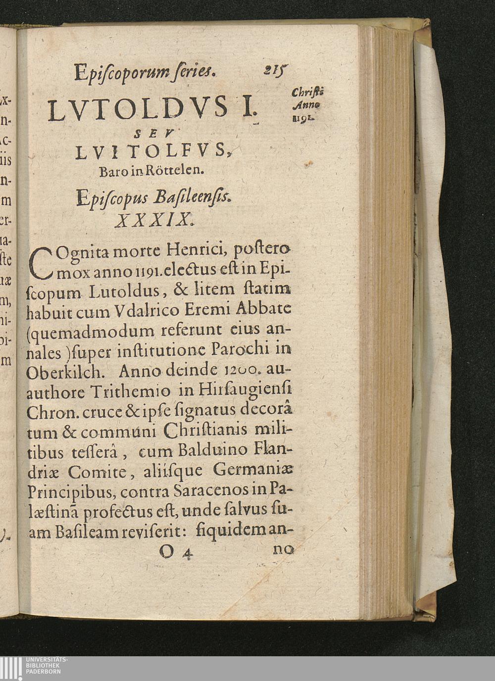 Basilea Sacra Sive Episcopatvs Et Episcoporvm Basileensivm Origo Ac Series : Reverendissimo, Et Illvstrissimo Principi Ioanni Conrado Ad Sacram Inavgvrationem, A Collegio Bruntrutano Societatis Iesv, singularis observantiae & honoris ergò Dicata, Consecrata / [Claudius Sudan]