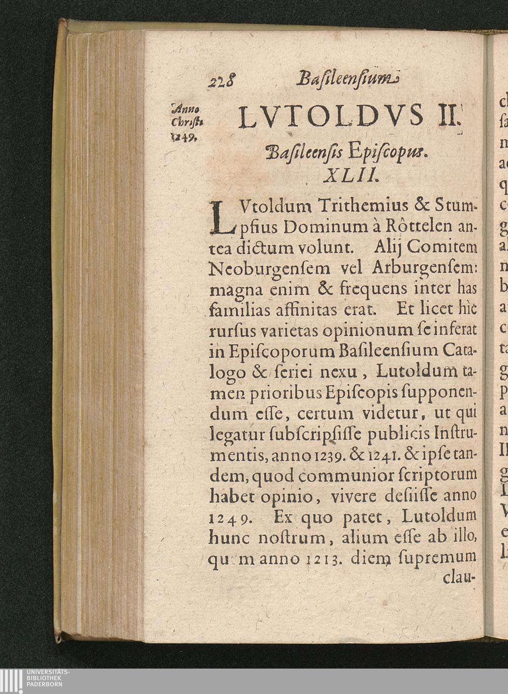 Basilea Sacra Sive Episcopatvs Et Episcoporvm Basileensivm Origo Ac Series : Reverendissimo, Et Illvstrissimo Principi Ioanni Conrado Ad Sacram Inavgvrationem, A Collegio Bruntrutano Societatis Iesv, singularis observantiae & honoris ergò Dicata, Consecrata / [Claudius Sudan]
