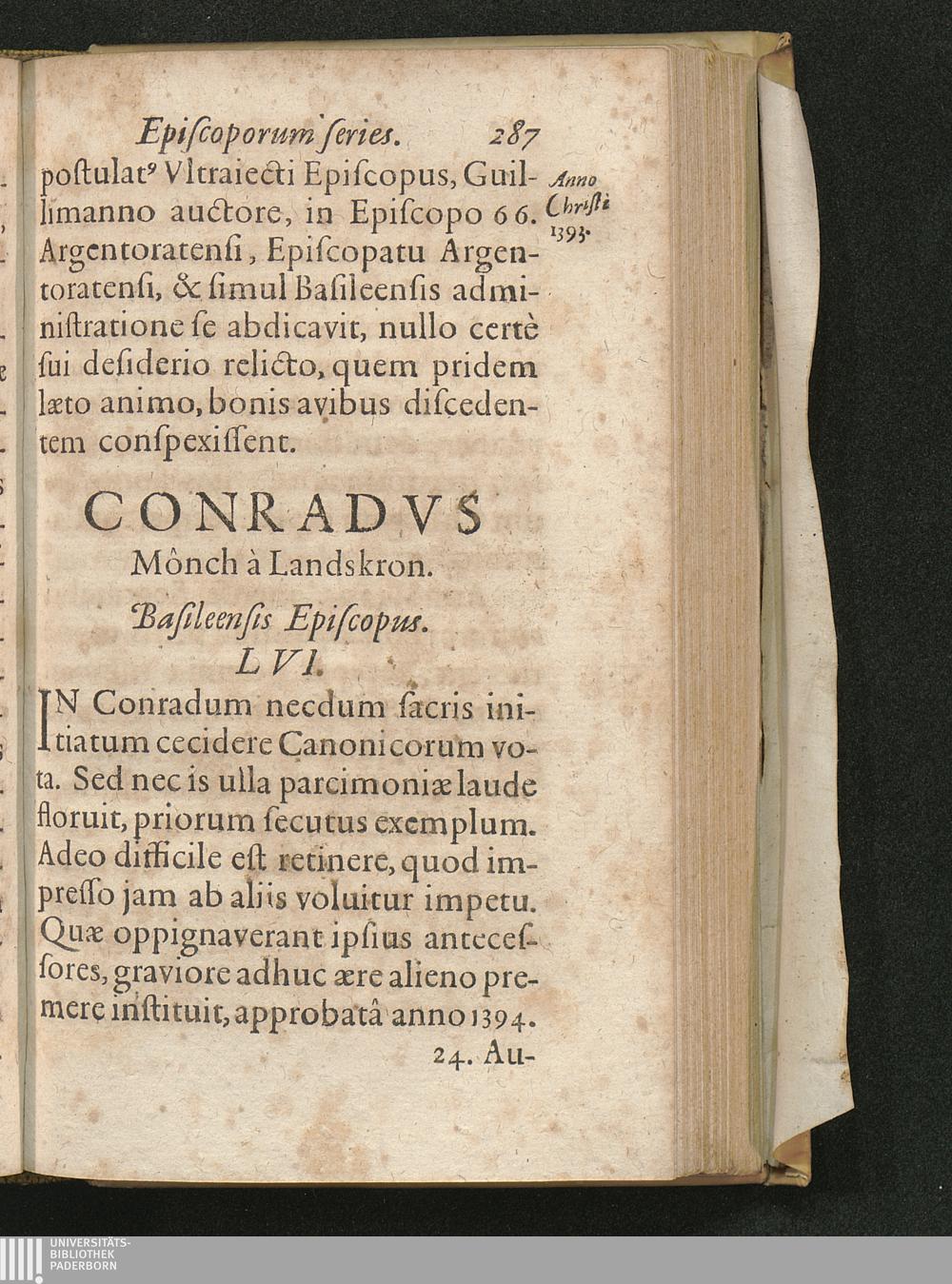 Basilea Sacra Sive Episcopatvs Et Episcoporvm Basileensivm Origo Ac Series : Reverendissimo, Et Illvstrissimo Principi Ioanni Conrado Ad Sacram Inavgvrationem, A Collegio Bruntrutano Societatis Iesv, singularis observantiae & honoris ergò Dicata, Consecrata / [Claudius Sudan]