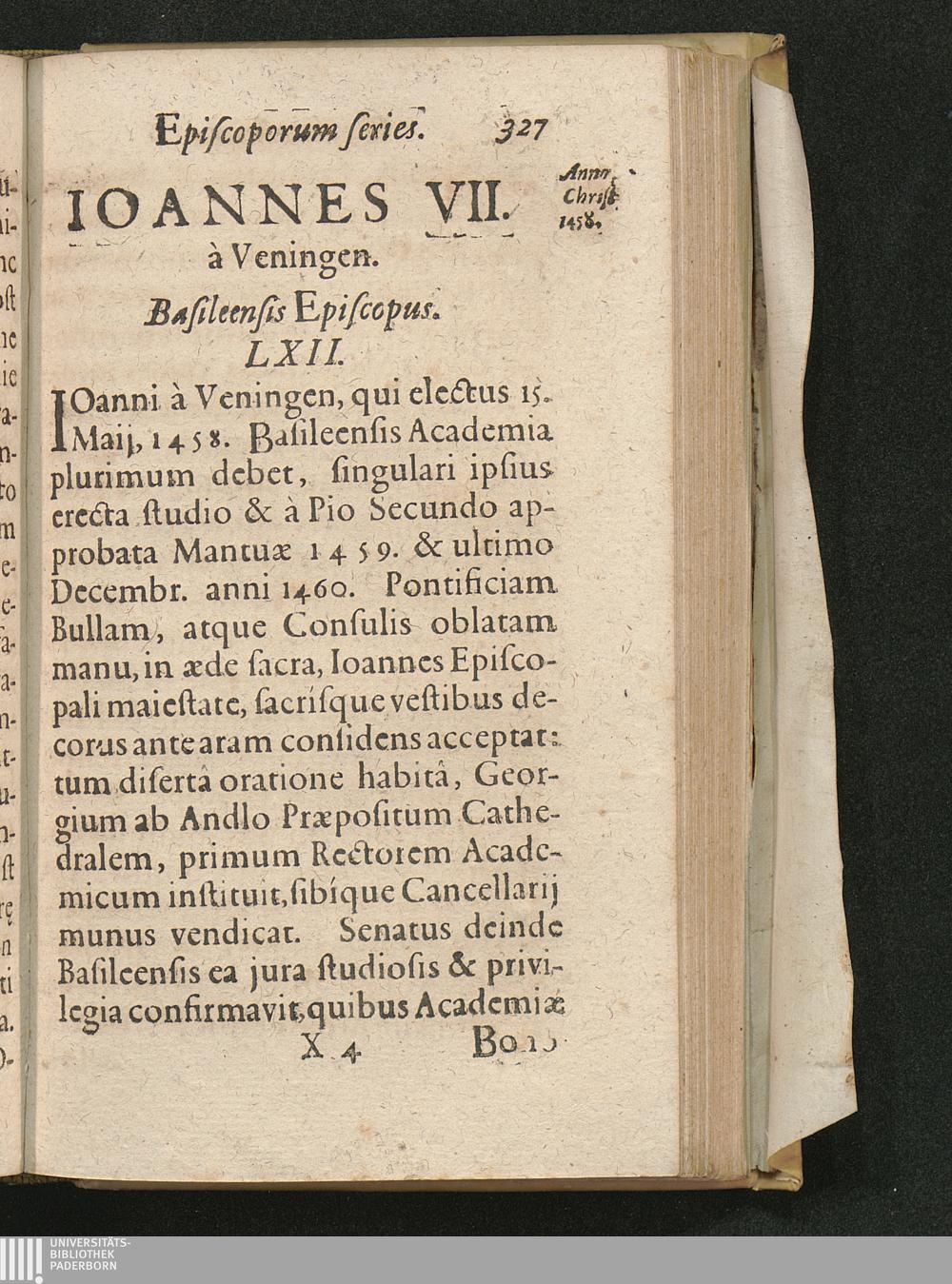 Basilea Sacra Sive Episcopatvs Et Episcoporvm Basileensivm Origo Ac Series : Reverendissimo, Et Illvstrissimo Principi Ioanni Conrado Ad Sacram Inavgvrationem, A Collegio Bruntrutano Societatis Iesv, singularis observantiae & honoris ergò Dicata, Consecrata / [Claudius Sudan]