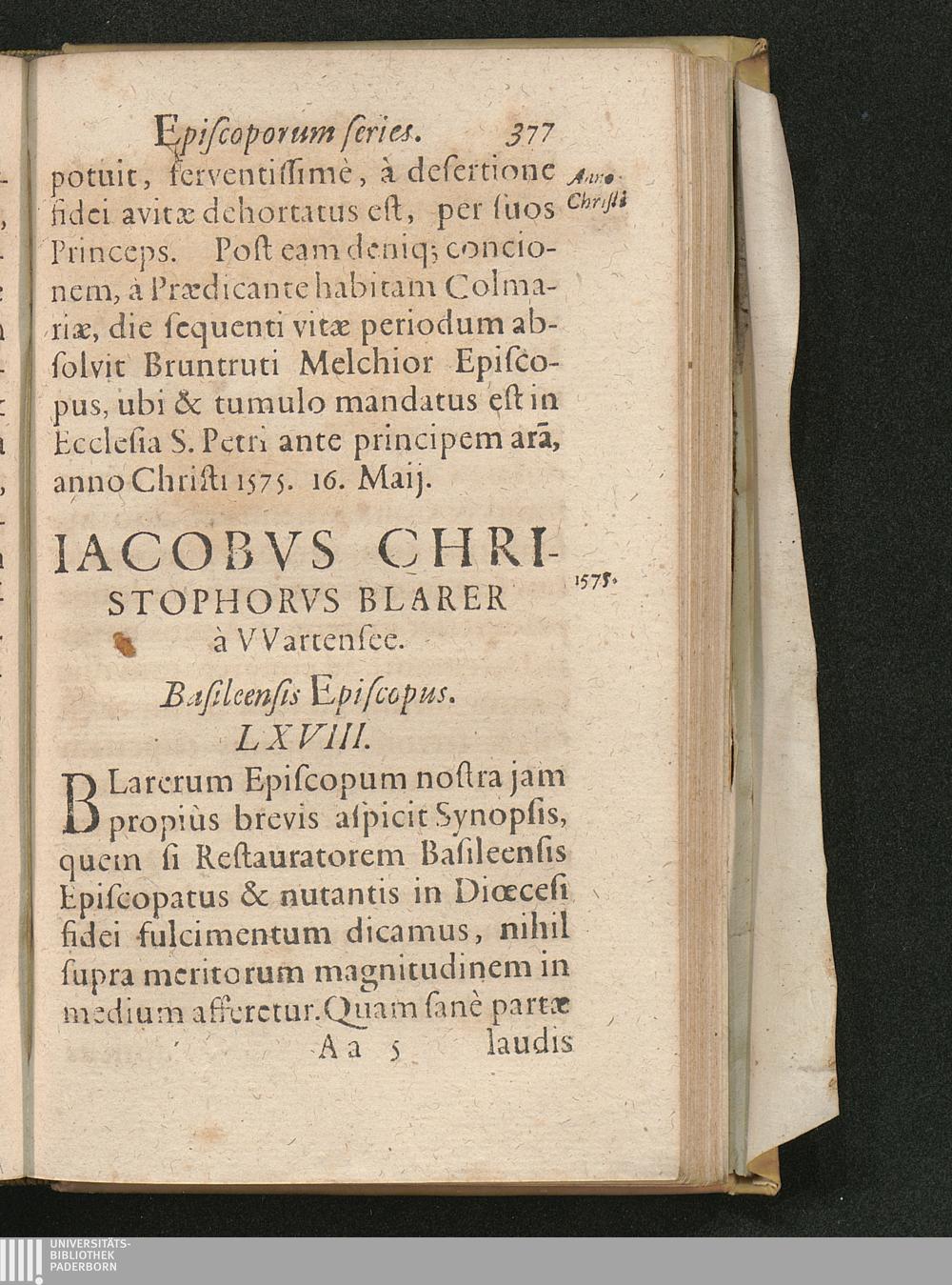 Basilea Sacra Sive Episcopatvs Et Episcoporvm Basileensivm Origo Ac Series : Reverendissimo, Et Illvstrissimo Principi Ioanni Conrado Ad Sacram Inavgvrationem, A Collegio Bruntrutano Societatis Iesv, singularis observantiae & honoris ergò Dicata, Consecrata / [Claudius Sudan]