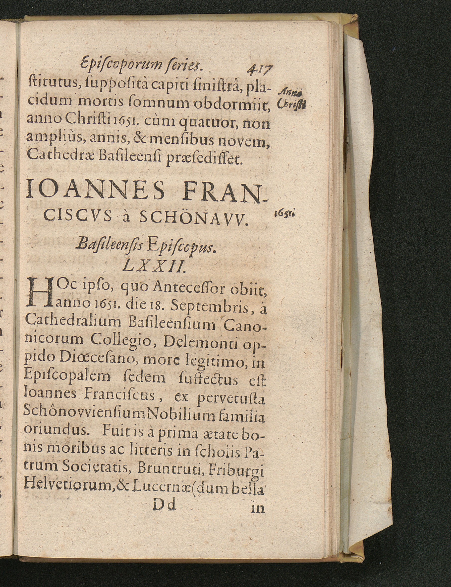 Basilea Sacra Sive Episcopatvs Et Episcoporvm Basileensivm Origo Ac Series : Reverendissimo, Et Illvstrissimo Principi Ioanni Conrado Ad Sacram Inavgvrationem, A Collegio Bruntrutano Societatis Iesv, singularis observantiae & honoris ergò Dicata, Consecrata / [Claudius Sudan]