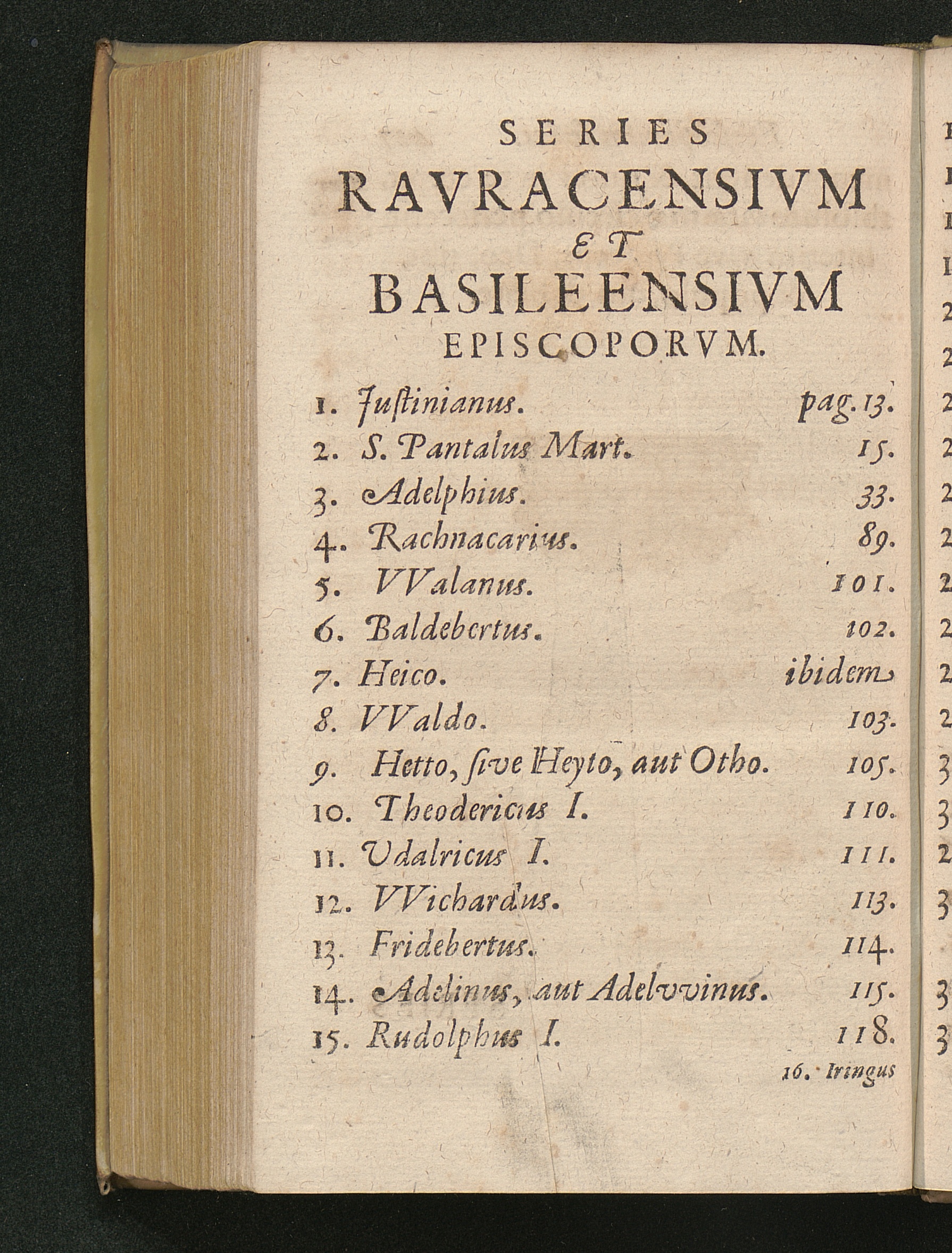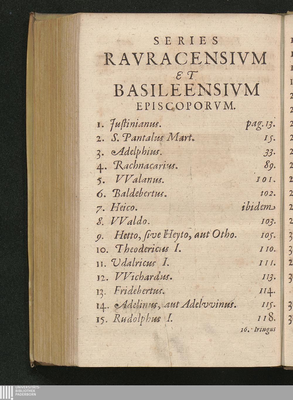 Basilea Sacra Sive Episcopatvs Et Episcoporvm Basileensivm Origo Ac Series : Reverendissimo, Et Illvstrissimo Principi Ioanni Conrado Ad Sacram Inavgvrationem, A Collegio Bruntrutano Societatis Iesv, singularis observantiae & honoris ergò Dicata, Consecrata / [Claudius Sudan]