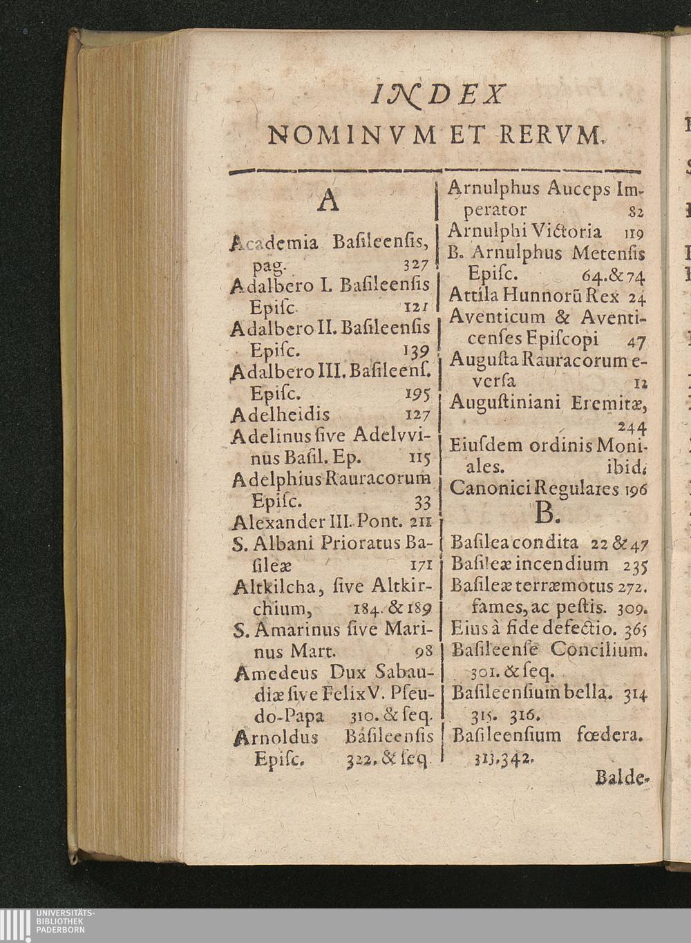 Basilea Sacra Sive Episcopatvs Et Episcoporvm Basileensivm Origo Ac Series : Reverendissimo, Et Illvstrissimo Principi Ioanni Conrado Ad Sacram Inavgvrationem, A Collegio Bruntrutano Societatis Iesv, singularis observantiae & honoris ergò Dicata, Consecrata / [Claudius Sudan]