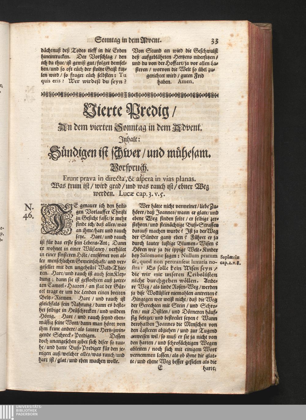 Vierte Predig/ An dem vierten Sonntag in dem Advent. Jnhalt: Sündigen ist schwer/[...]