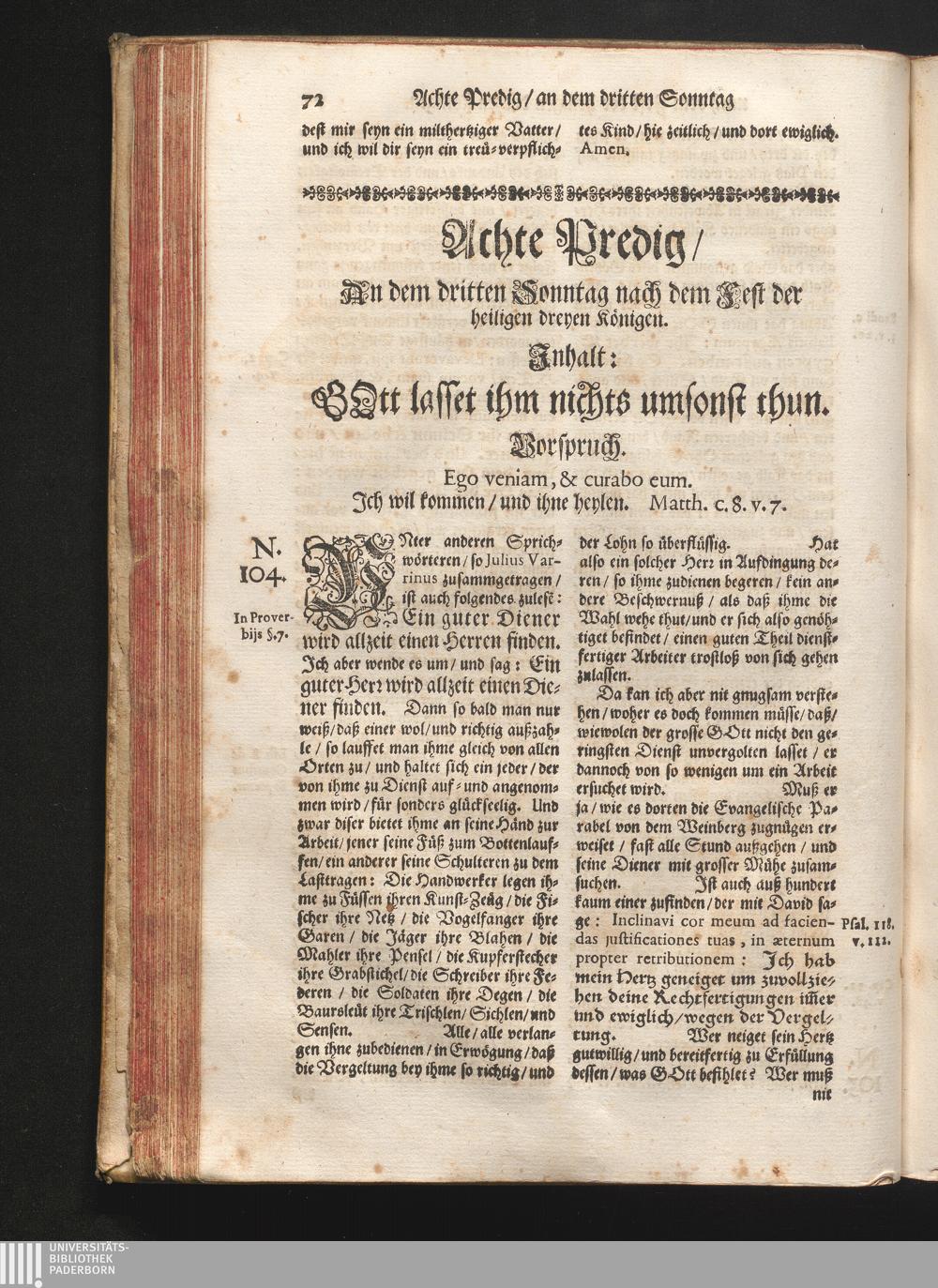 Achte Predig/ An dem dritten Sonntag nach dem Fest der heiligen dreyen Königen. Jnhalt:[...]