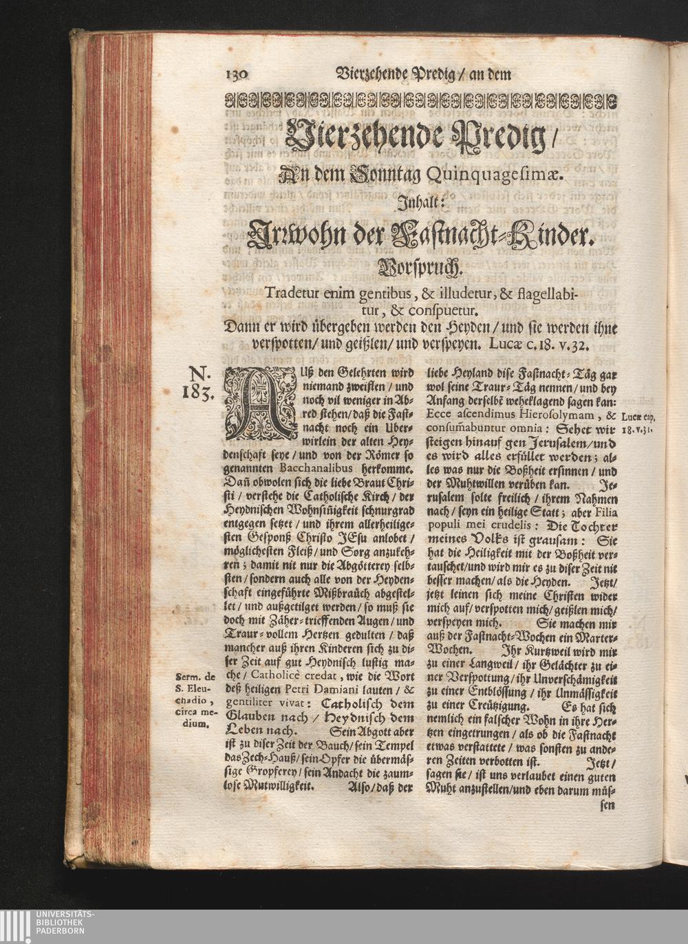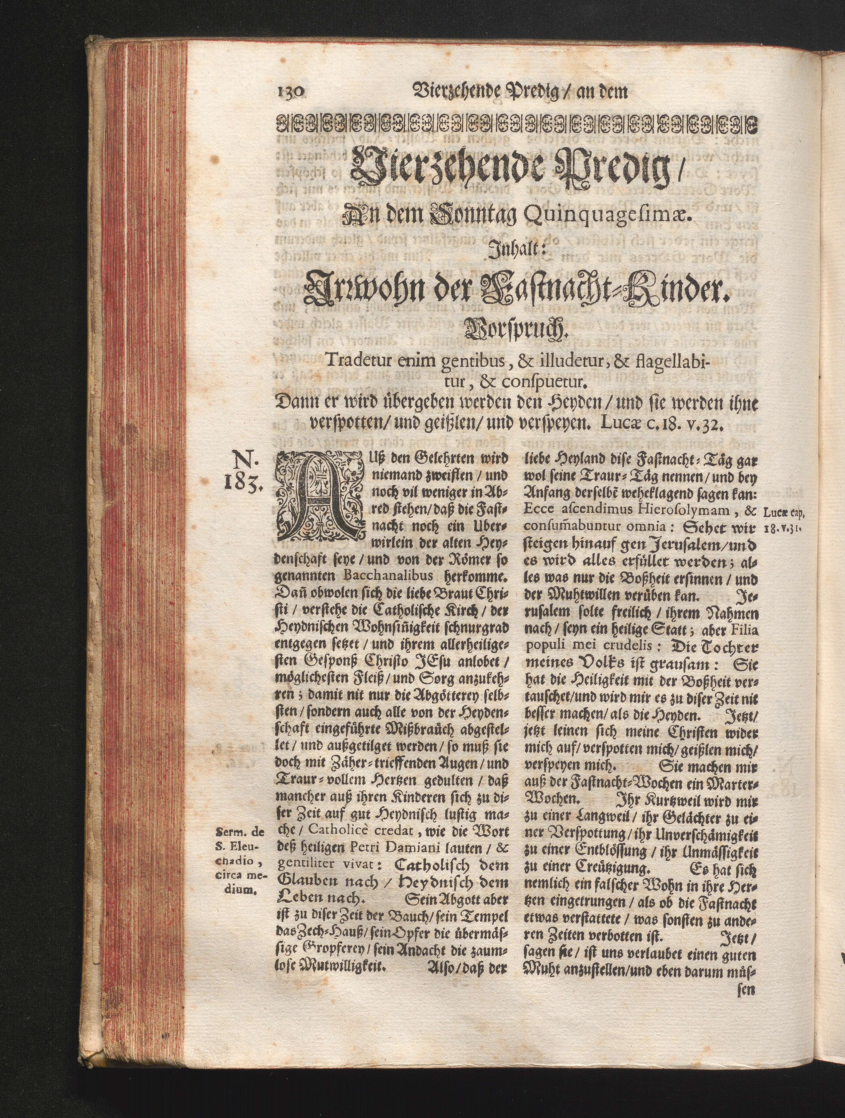 Vierzehende Predig/ An dem Sonntag Quinquagesimæ. Jnhalt: Jrrwohn der Fastnacht-Kinder.[...]