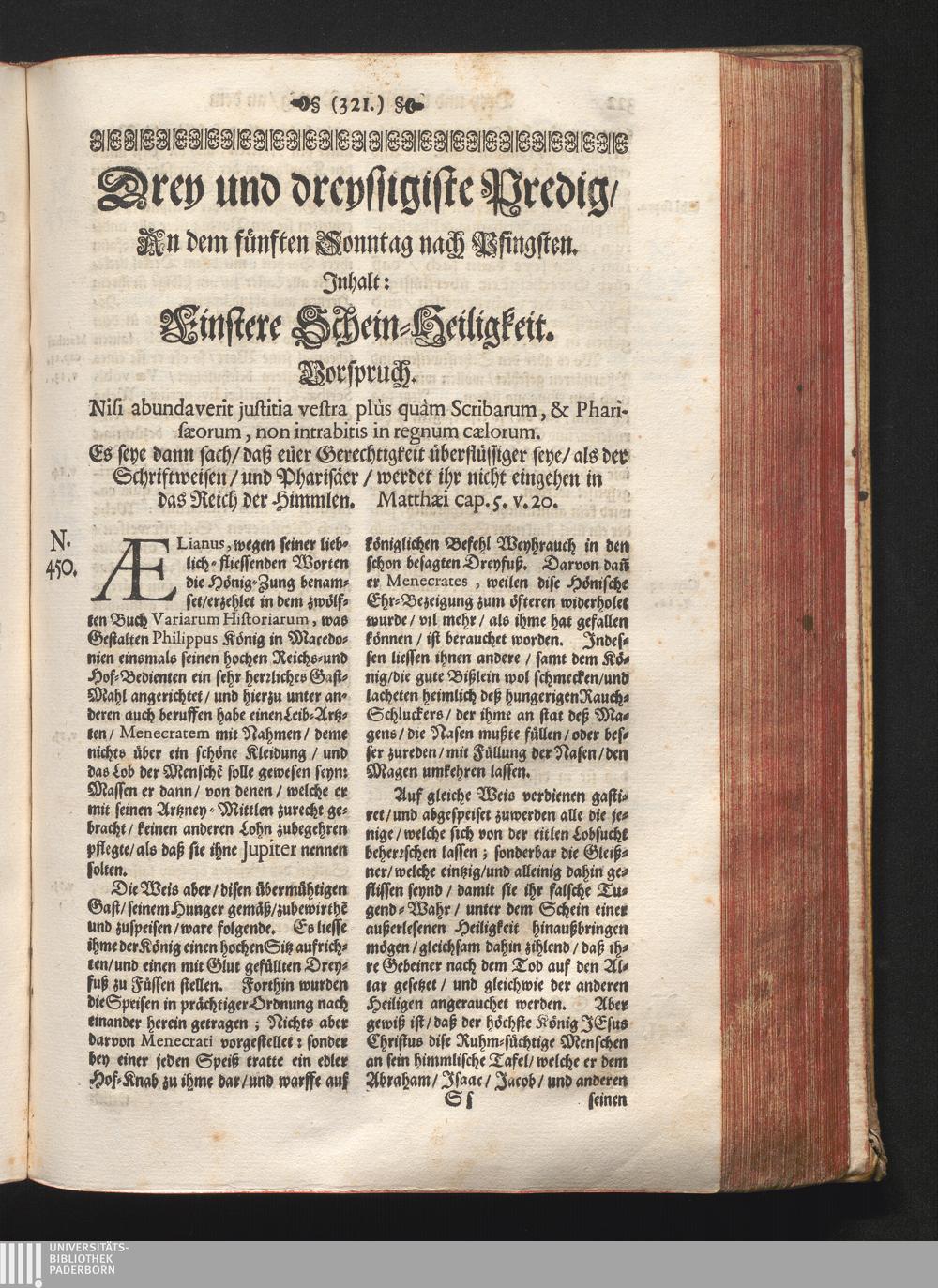 Drey und dreyssigiste Predig/ An dem fünften Sonntag nach Pfingsten. Jnhalt: Finstere[...]