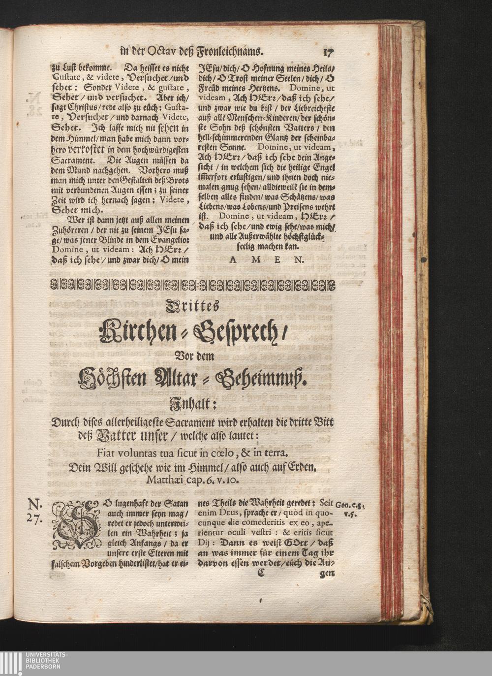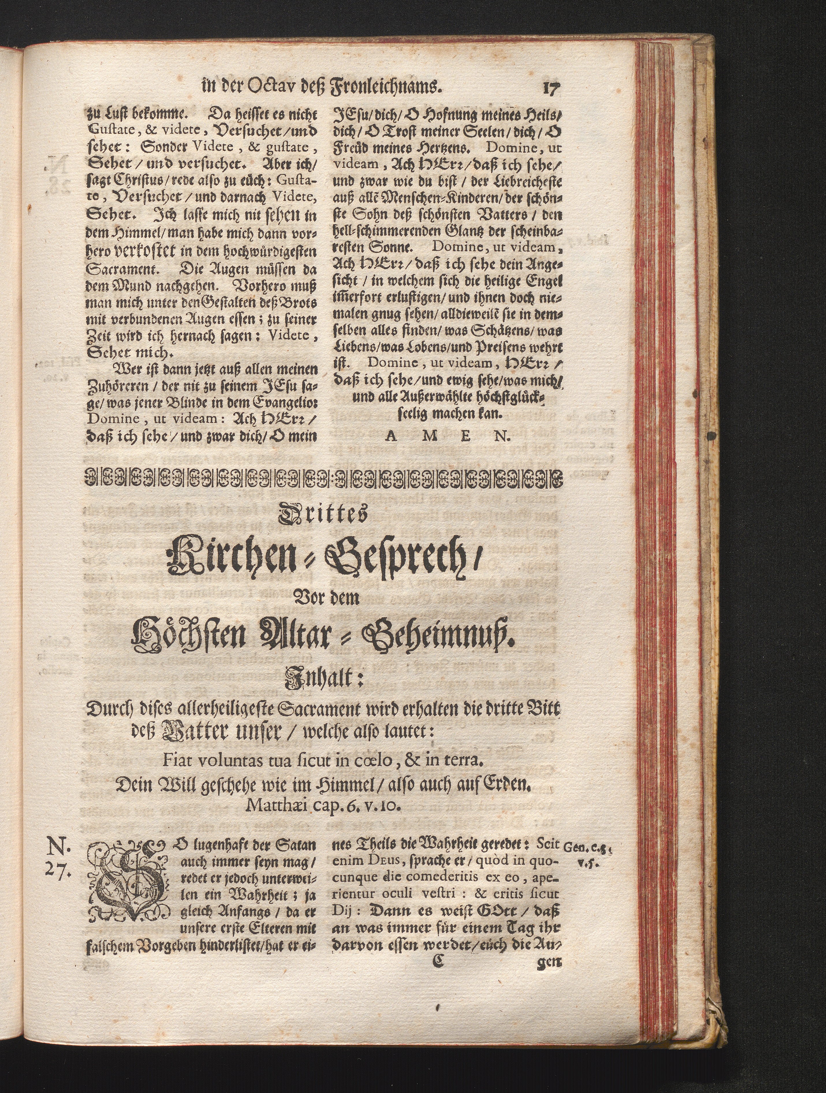 Drittes Kirchen-Gesprech/ Vor dem Höchsten Altar-Geheimnuß. Jnhalt: Durch dises allerheiligeste[...]