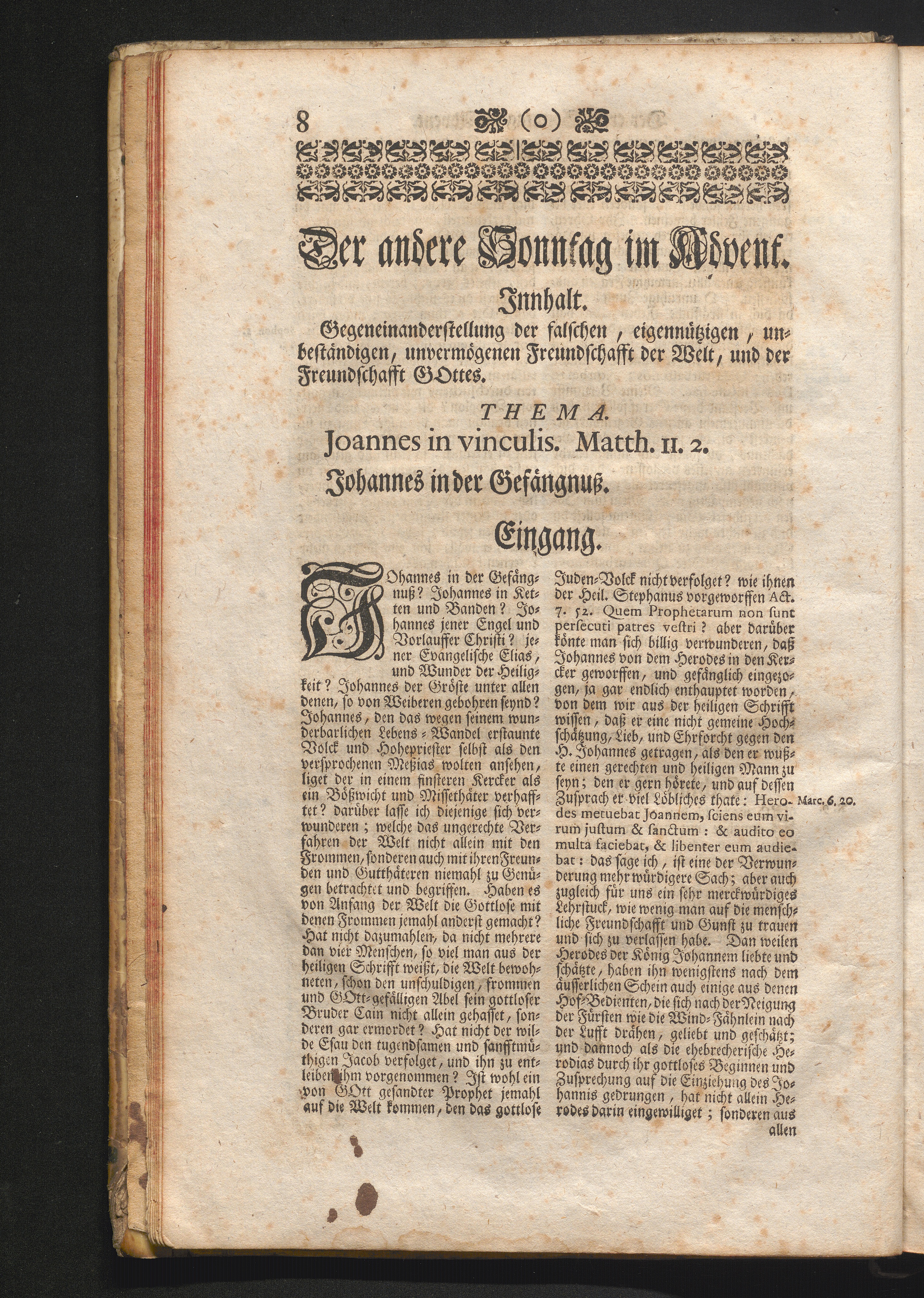 Der andere Sonntag im Advent. Von der wahren und falschen Freundschafft. Jnnhalt.[...]