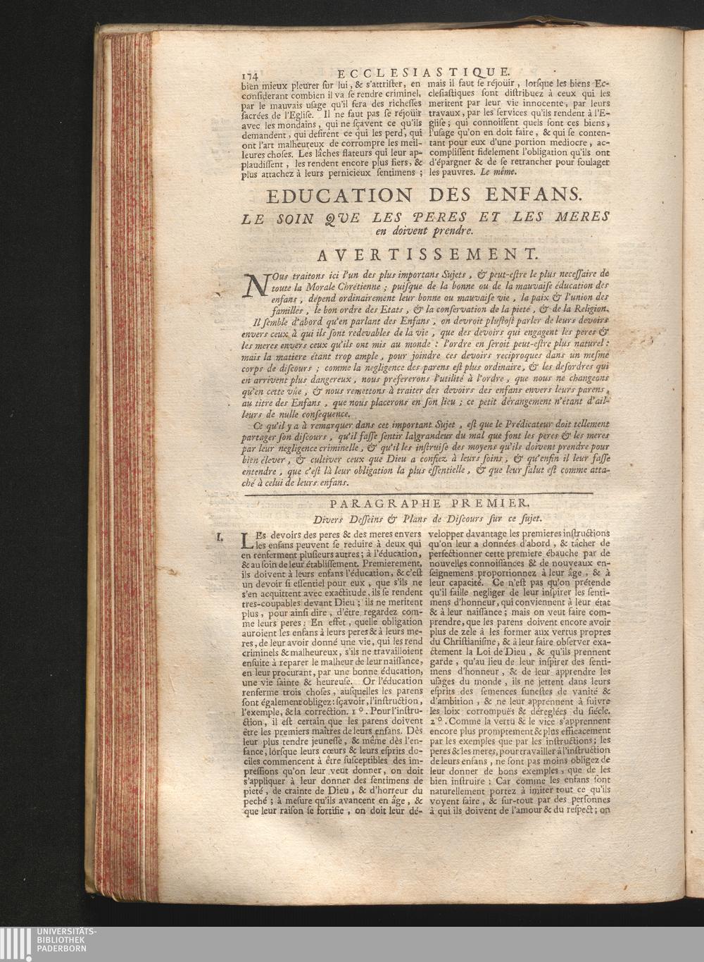 Education Des Enfans. Le soin que les peres & les meres en doivent prendre.