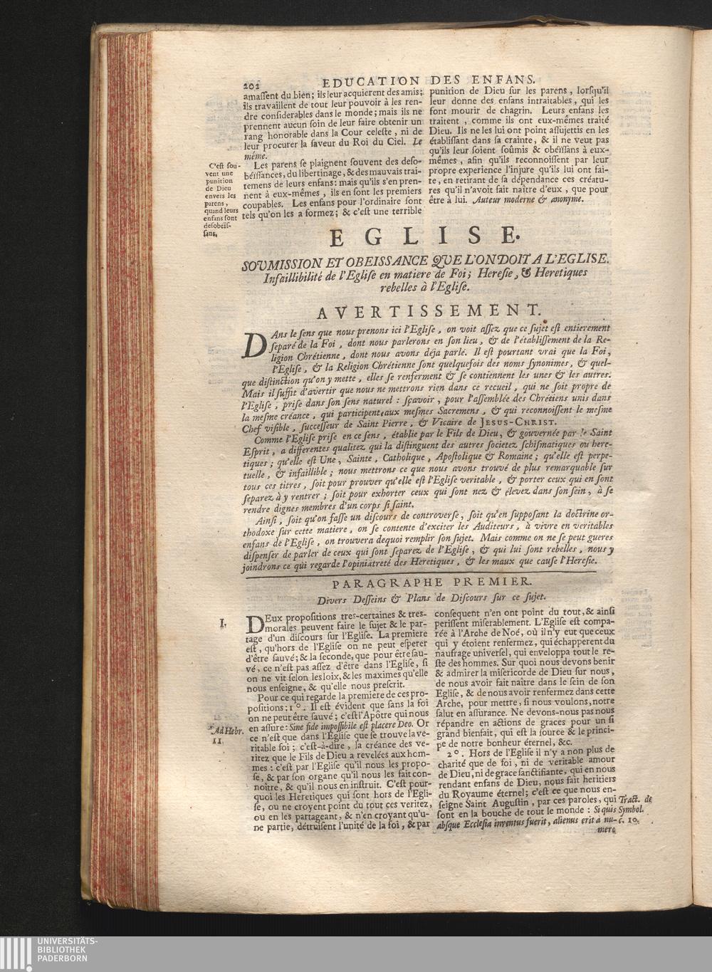 Eglise. Soumission & obéissance que l'on doit à l'Eglise; infaillibilité de l'Eglise[...]