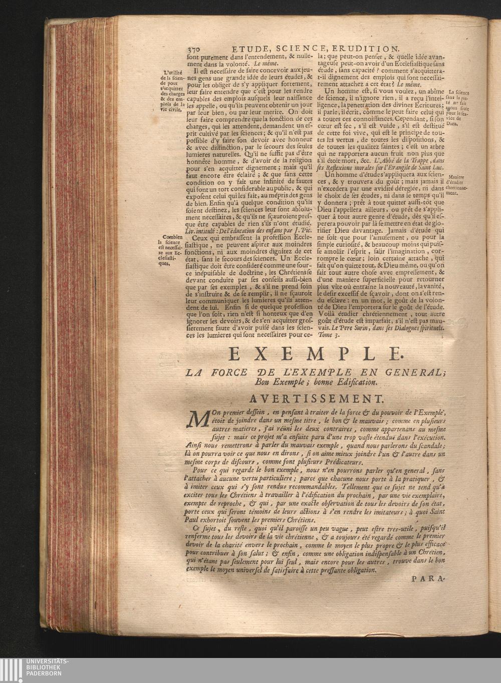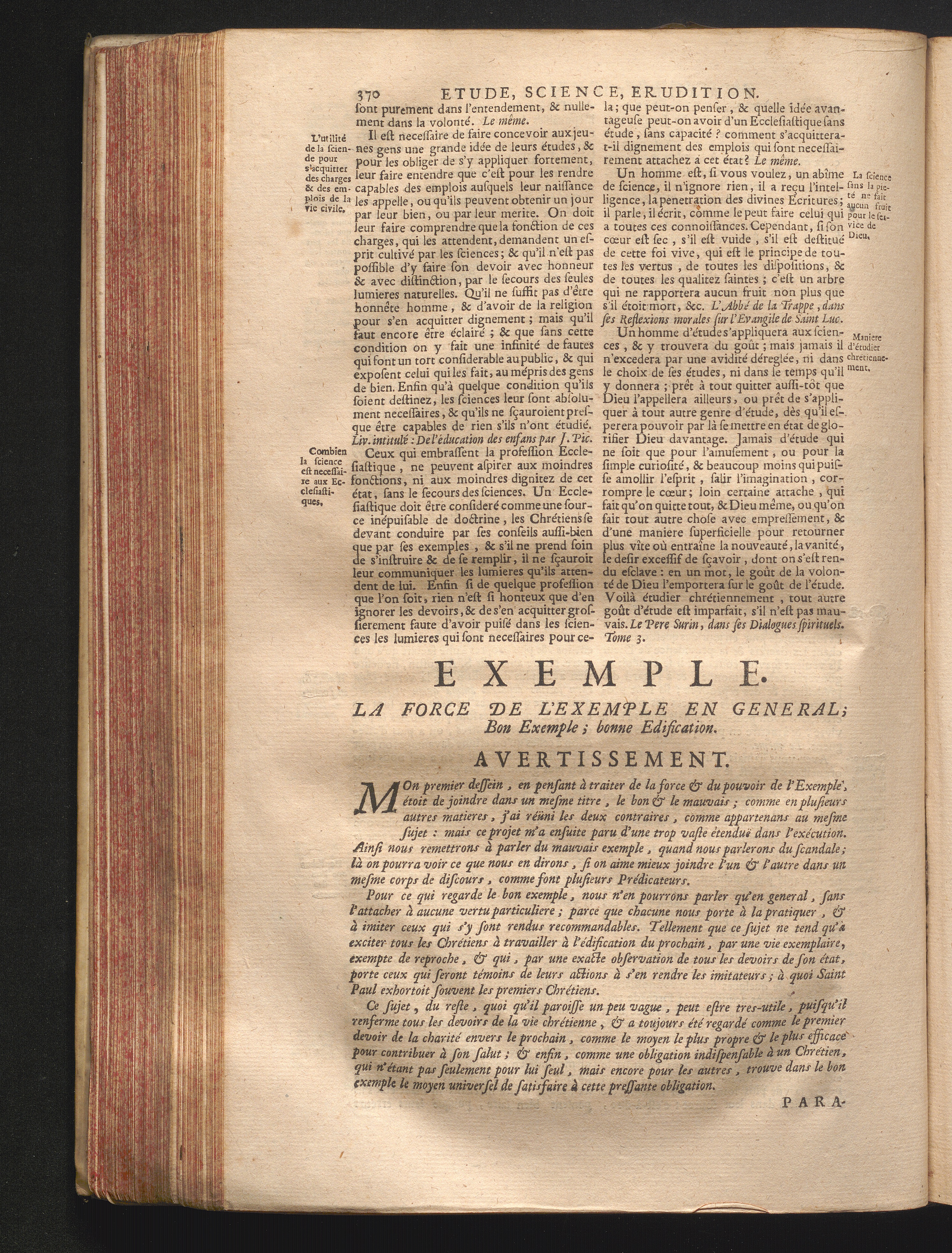 Exemple. La force de l'exemple en general; bon exemple, bonne édification.