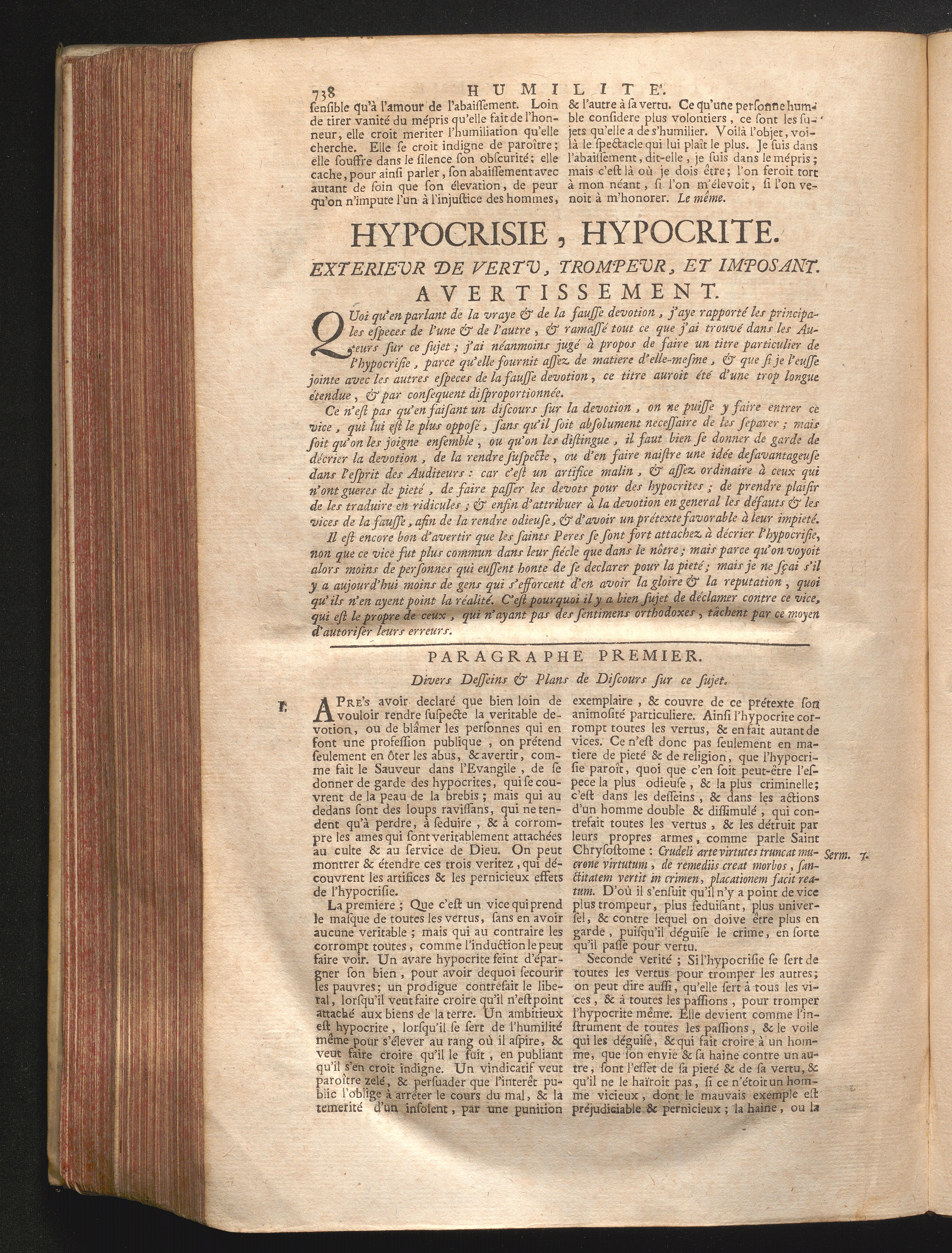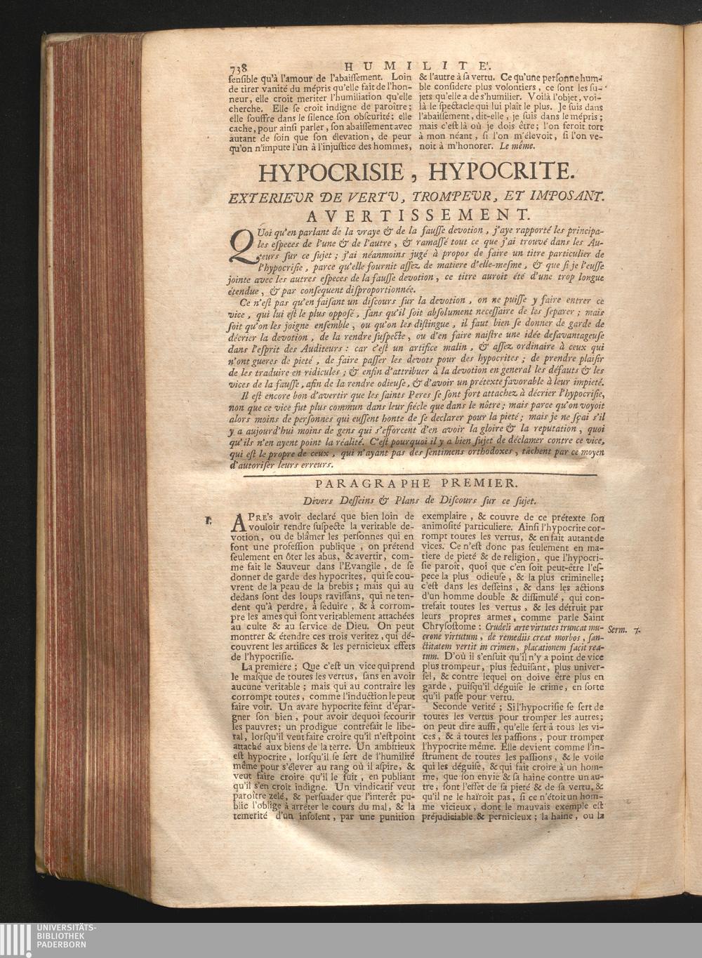 Hypocrisie, hypocrite. Exterieur de vertu, trompeur & imposant.
