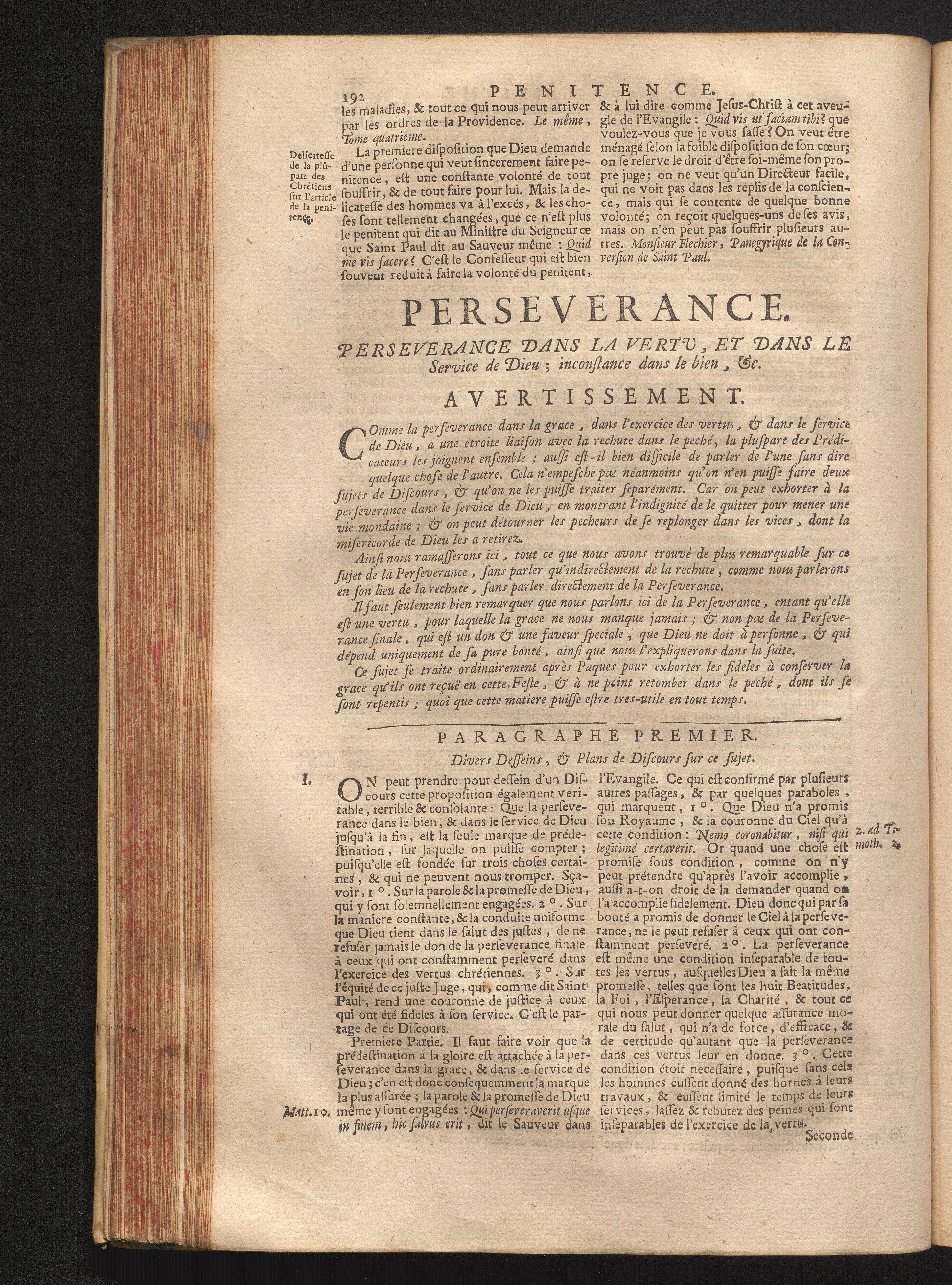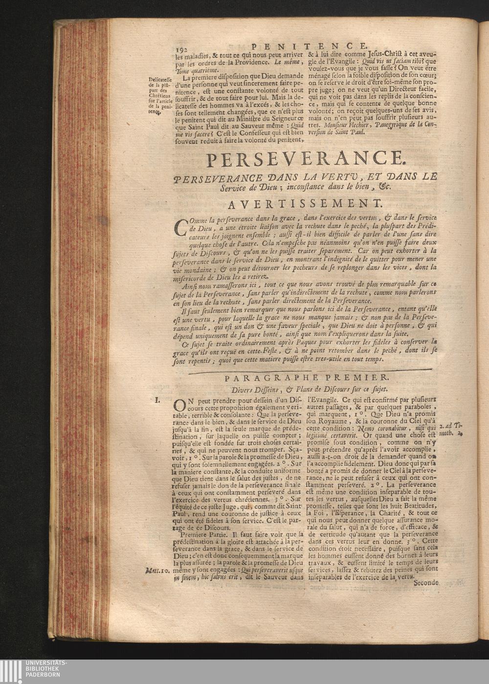 Perseverance. Perseverance dans la vertu, & dans le service de Dieu; inconstance[...]