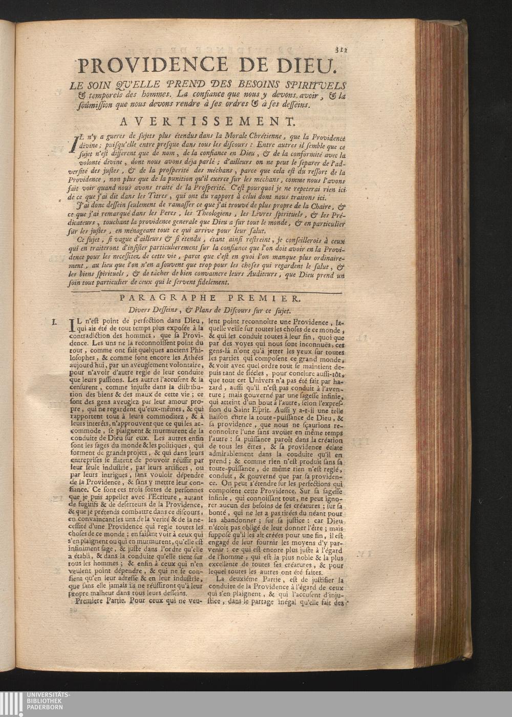 Providence De Dieu. Le soin qu'elle prend des besoins spirituels & temporels des[...]