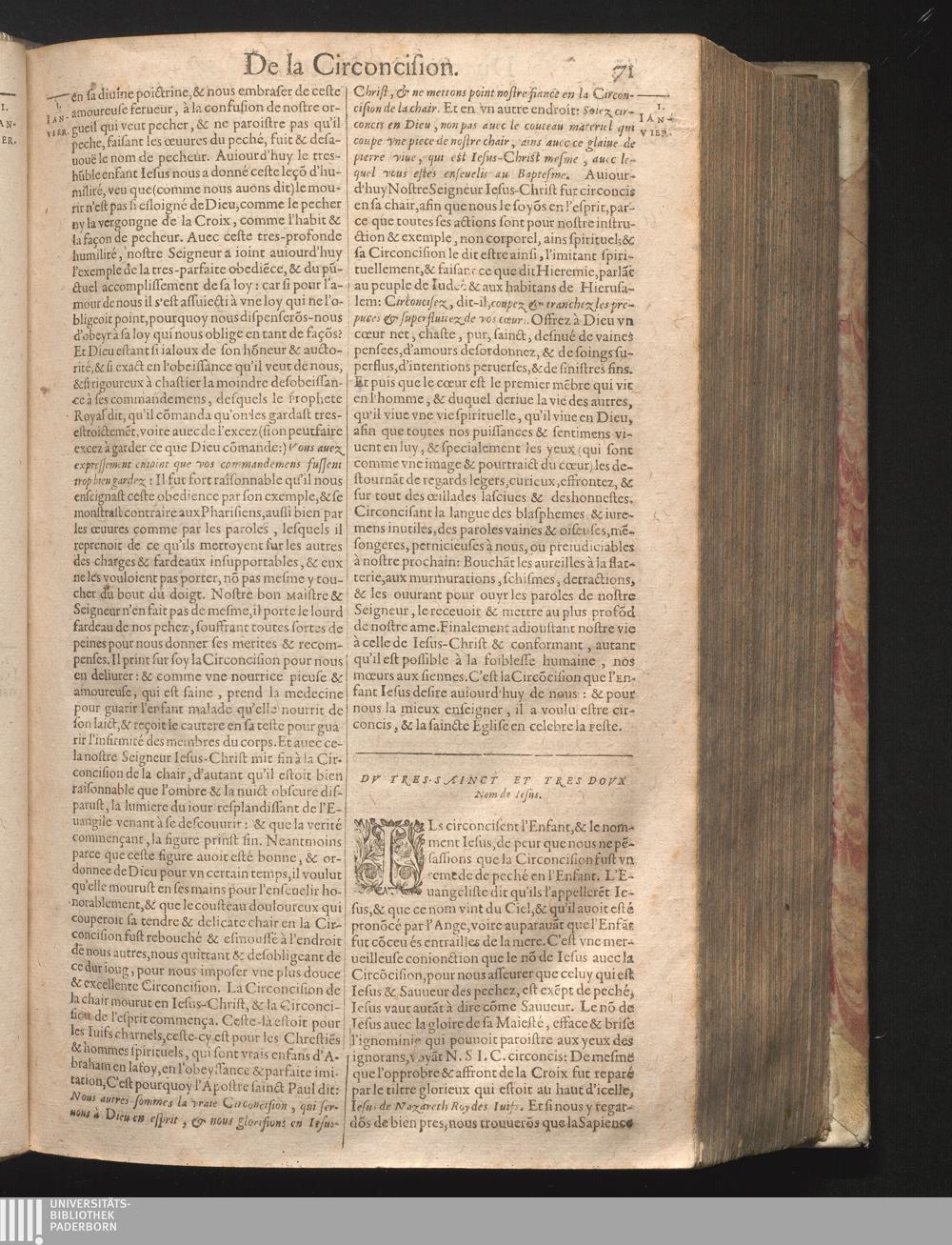 I Du tres-sainct & tres-doux nom de Iesus.