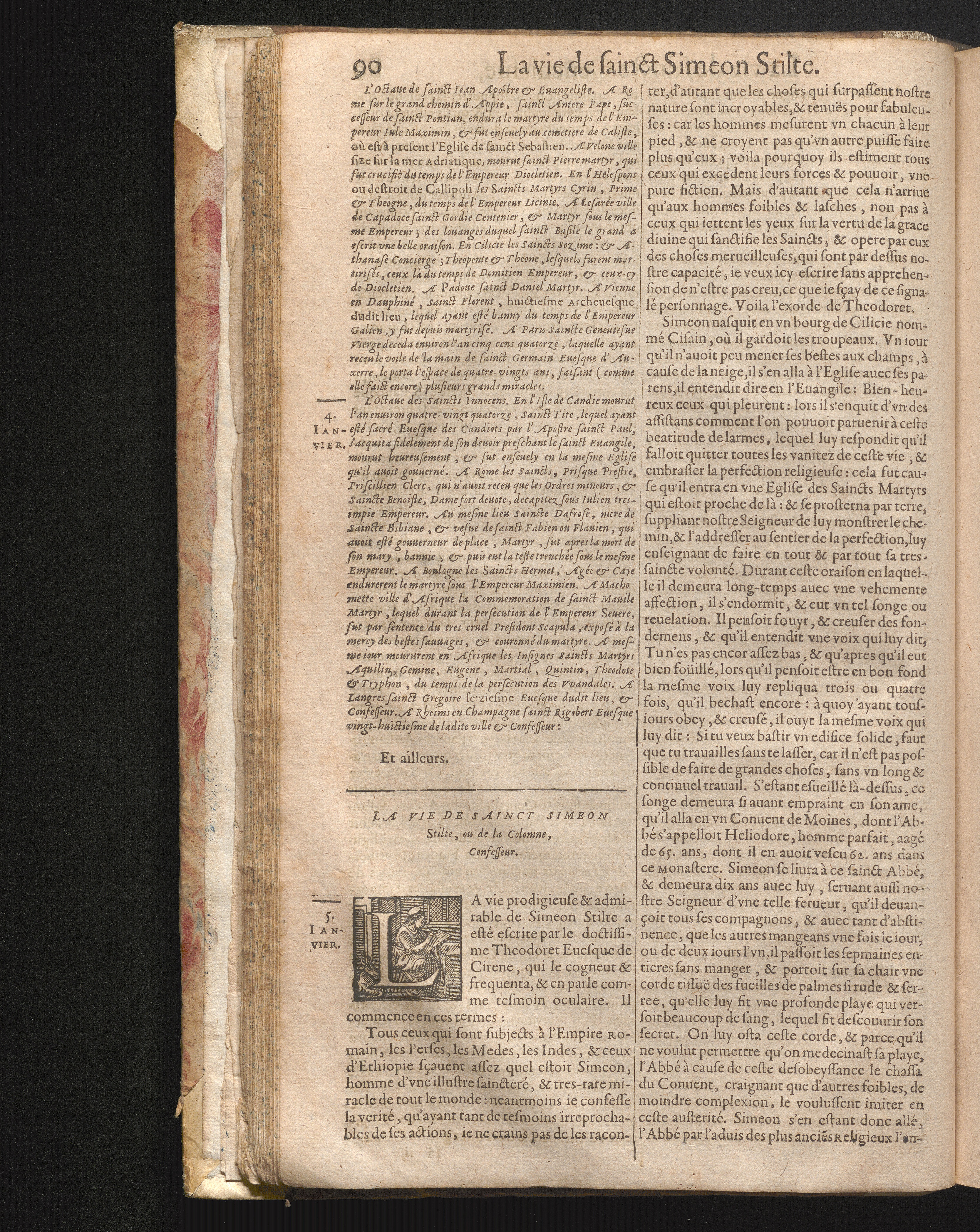 V La vie de sainct Simeon Stilite, ou de la colomne, Confesseur.