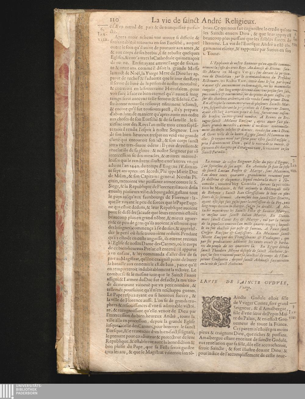 [1] (1631) Les fleurs des vies des saincts et des festes de toute l'année, suivant l'usage du calendrier Romain Reforme