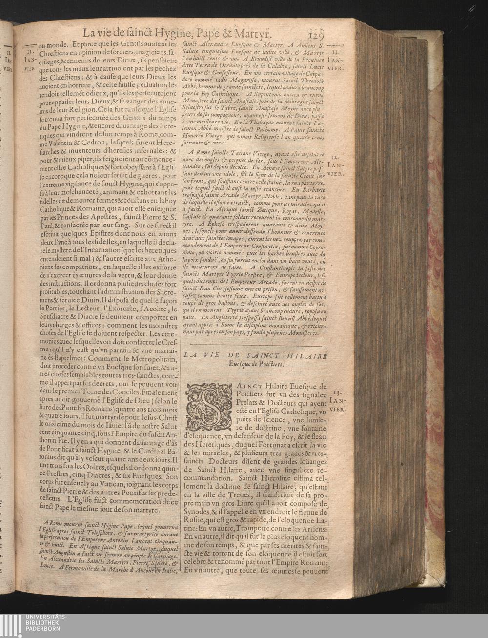XIII La vie de sainct Hilaire Euesque de Poictiers.