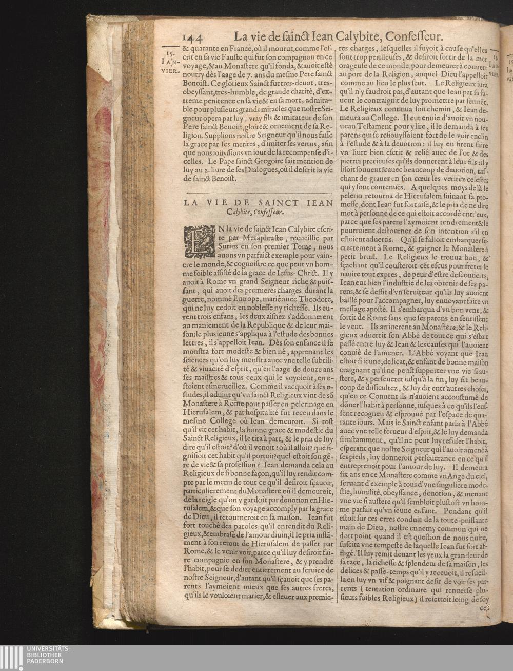 [1] (1631) Les fleurs des vies des saincts et des festes de toute l'année, suivant l'usage du calendrier Romain Reforme