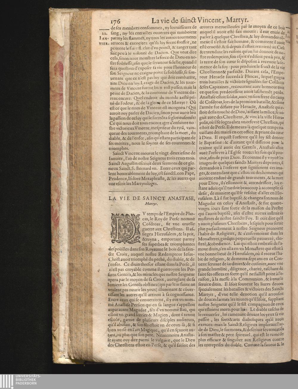 XXII La vie de sainct Anastase martyr.