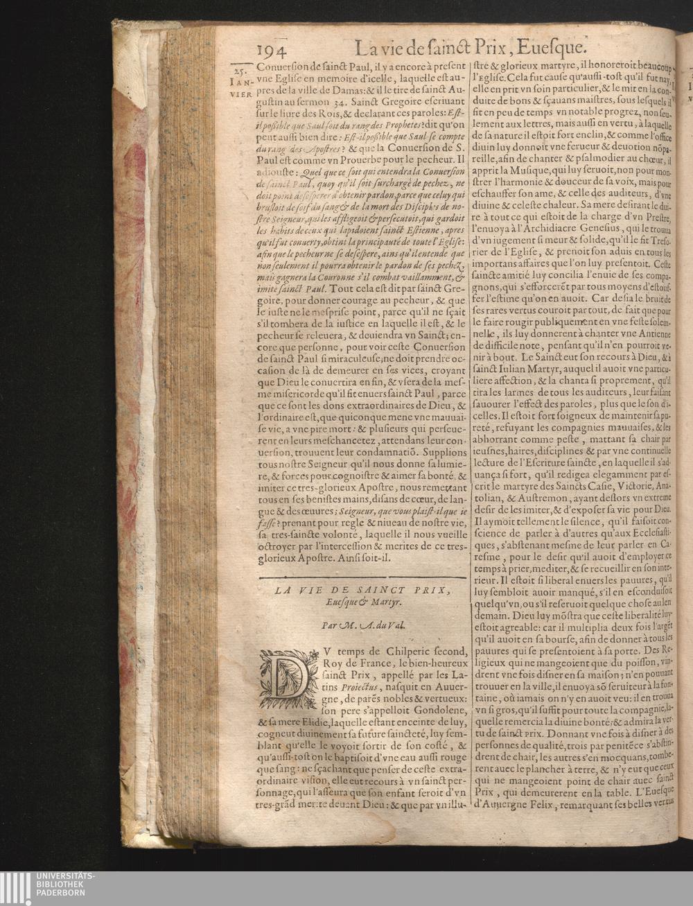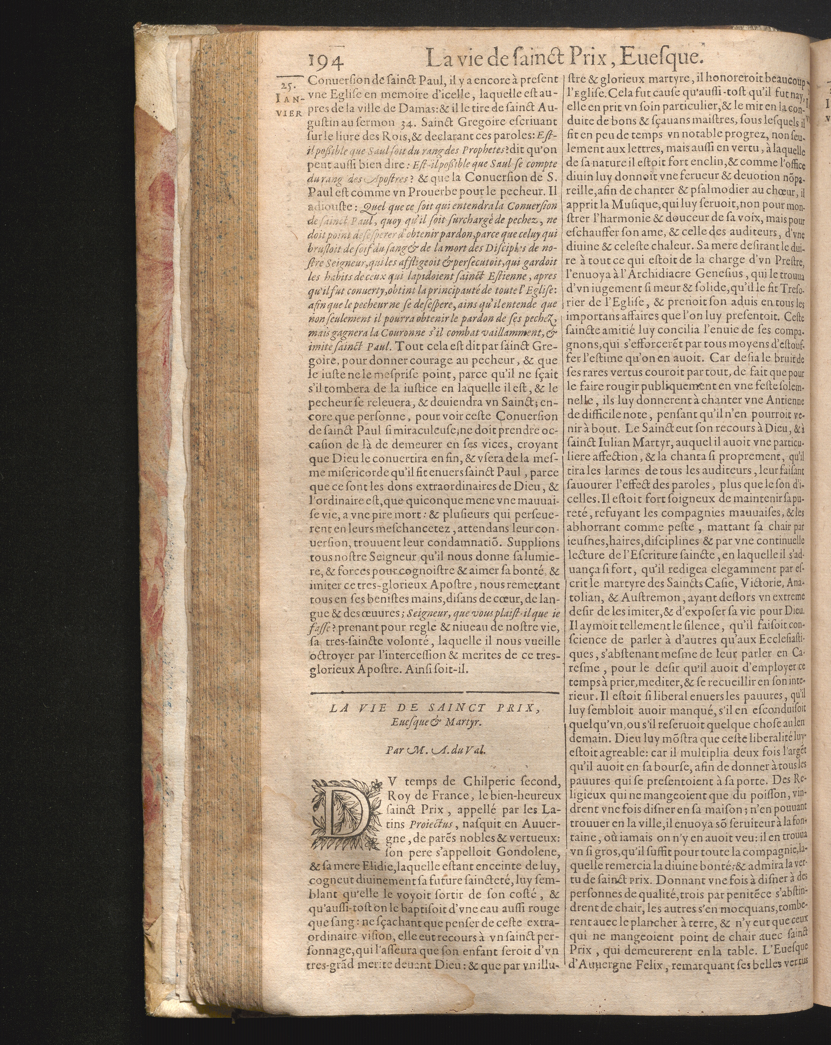 XXV La vie de sainct Prix, Euesque & Martyr.