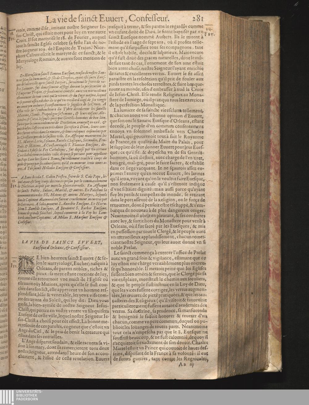 XX La vie de sainct Euuert Euesque d'Orleans, Confesseur.