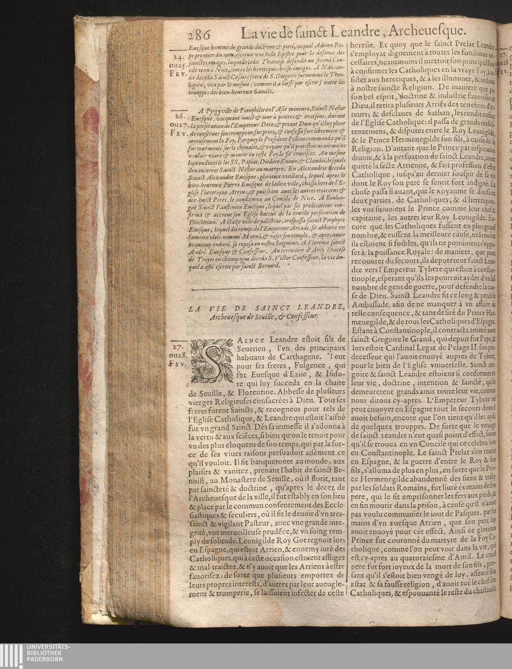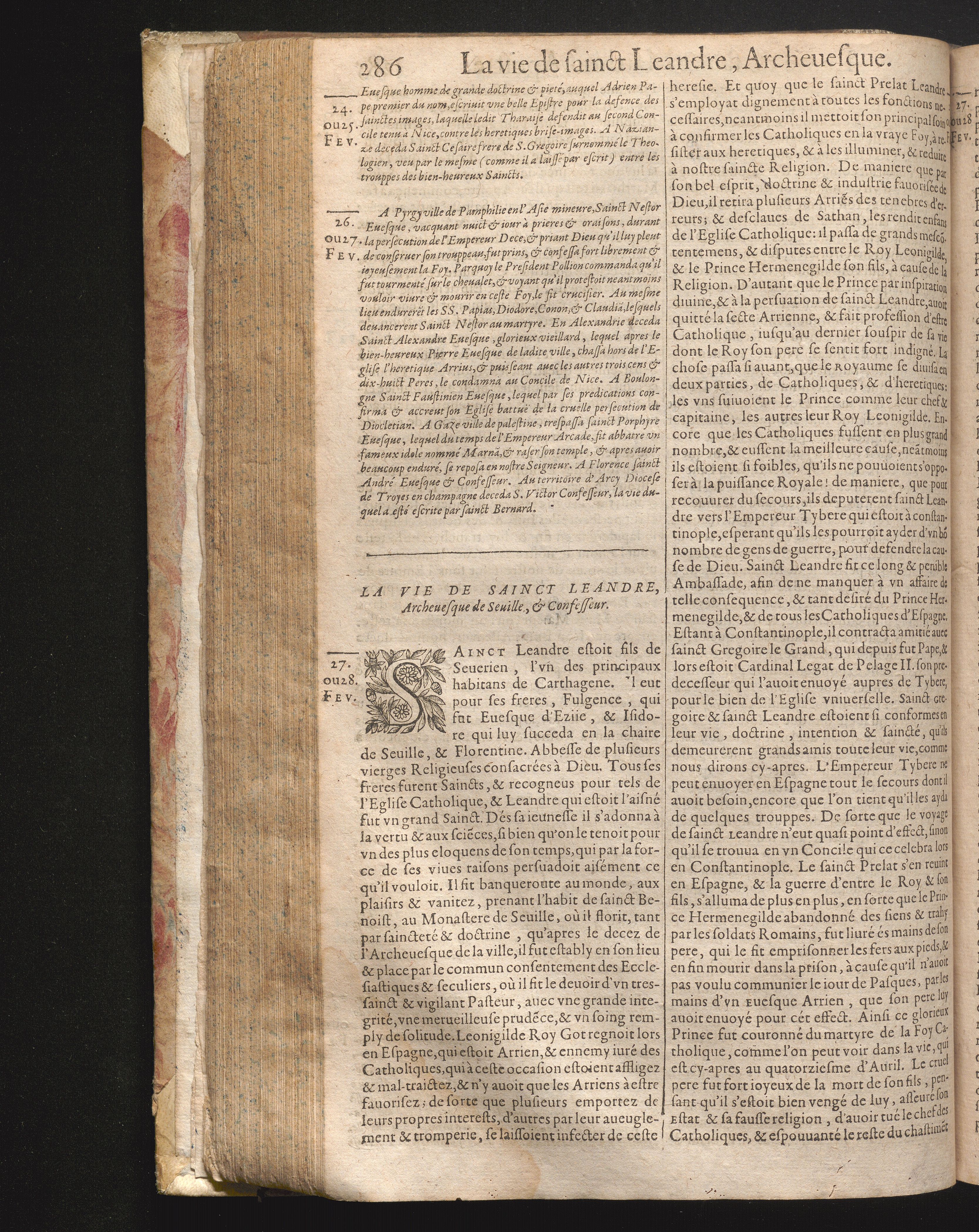XXVII La vie de sainct Leandre Archeuesque de Seuille, Confesseur.
