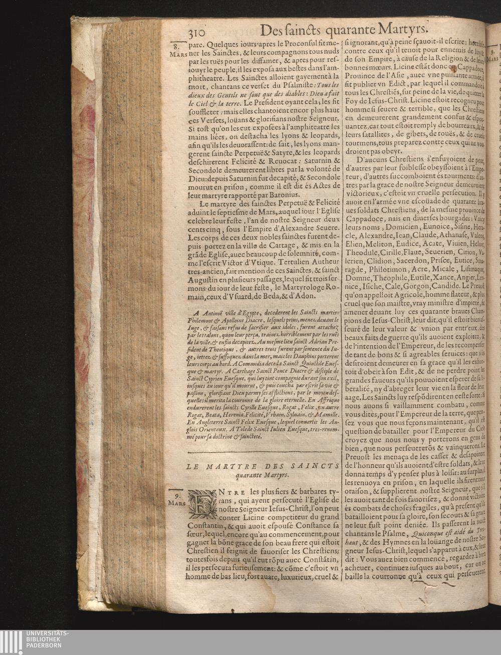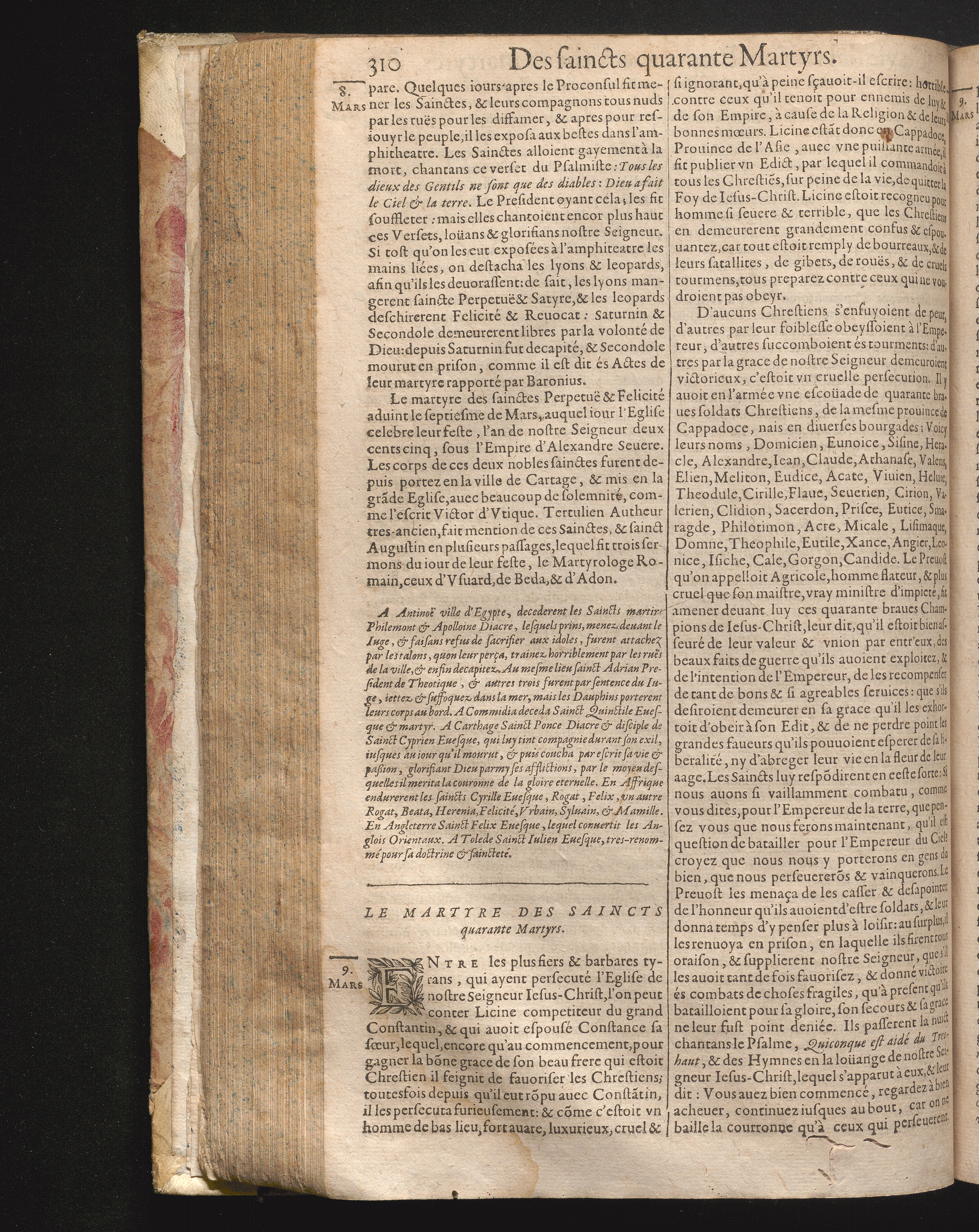 [1] (1631) Les fleurs des vies des saincts et des festes de toute l'année, suivant l'usage du calendrier Romain Reforme