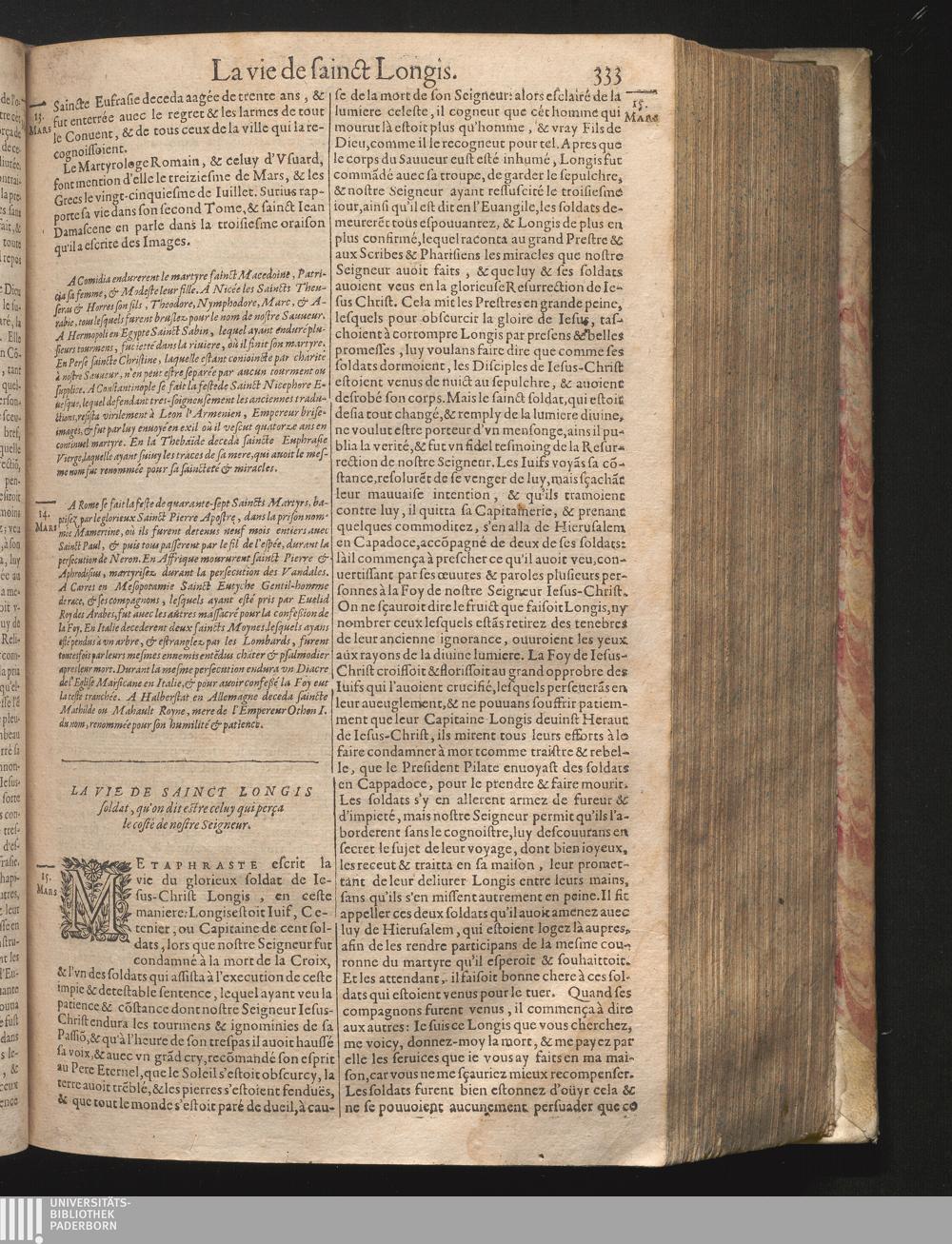 [1] (1631) Les fleurs des vies des saincts et des festes de toute l'année, suivant l'usage du calendrier Romain Reforme
