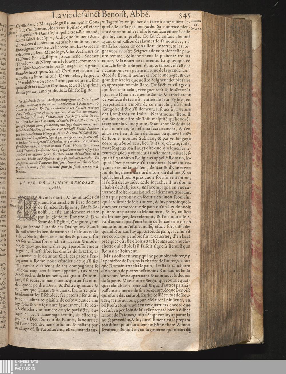 [1] (1631) Les fleurs des vies des saincts et des festes de toute l'année, suivant l'usage du calendrier Romain Reforme