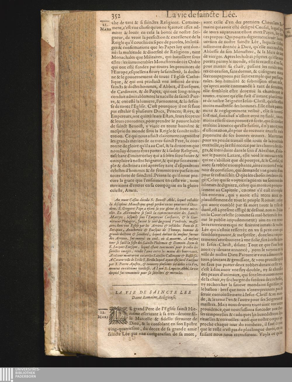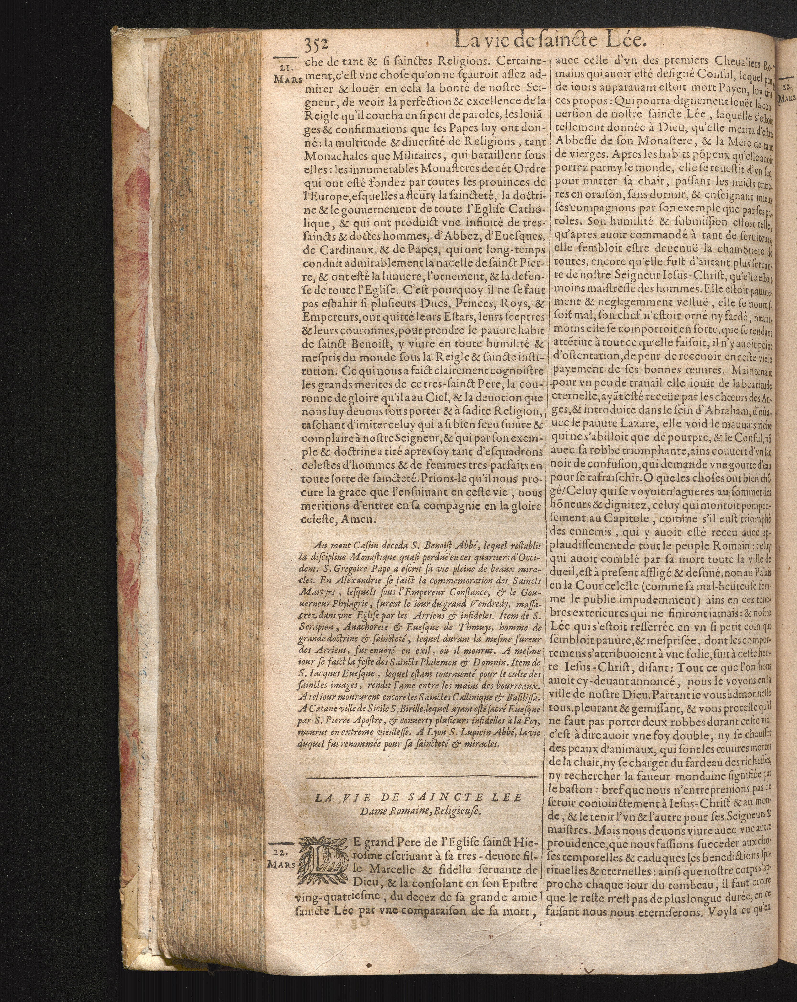 XXII La vie de saincte Lée, Dame Romaine, Religieuse.