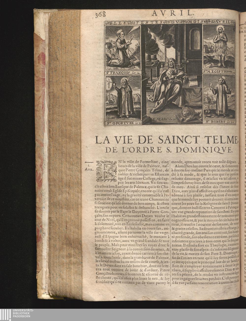 I La vie de sainct Telme de l'Ordre sainct Dominique.