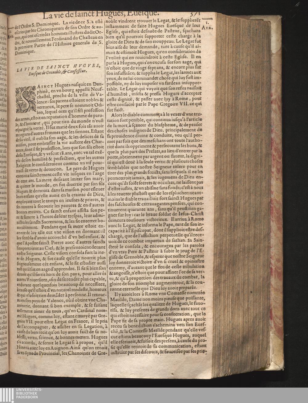 II La vie de sainct Hugues Euesque de Grenoble Confesseur.