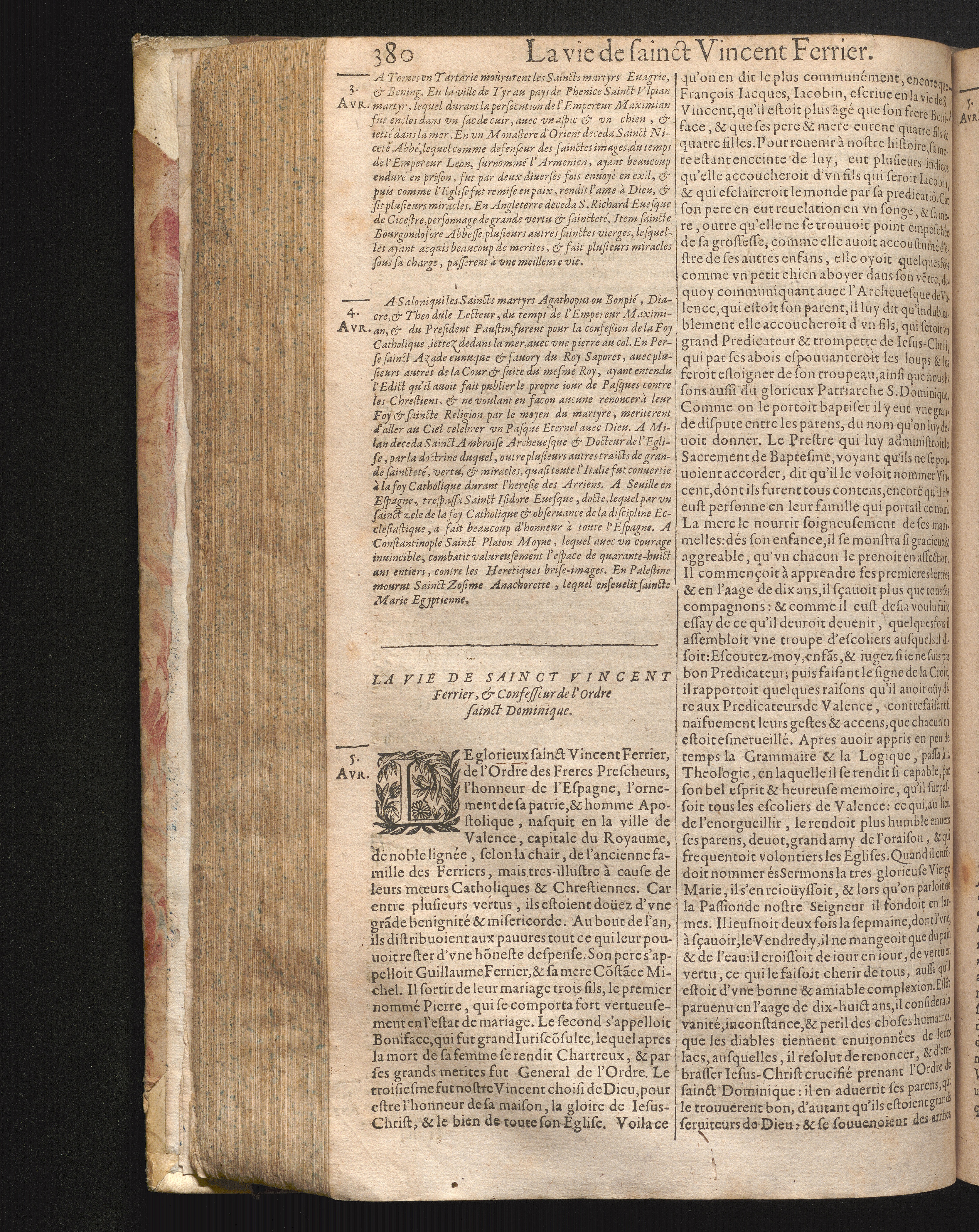 V La vie de sainct Vincent Ferrier, de l'Ordre de sainct Dominique, Confesseur.