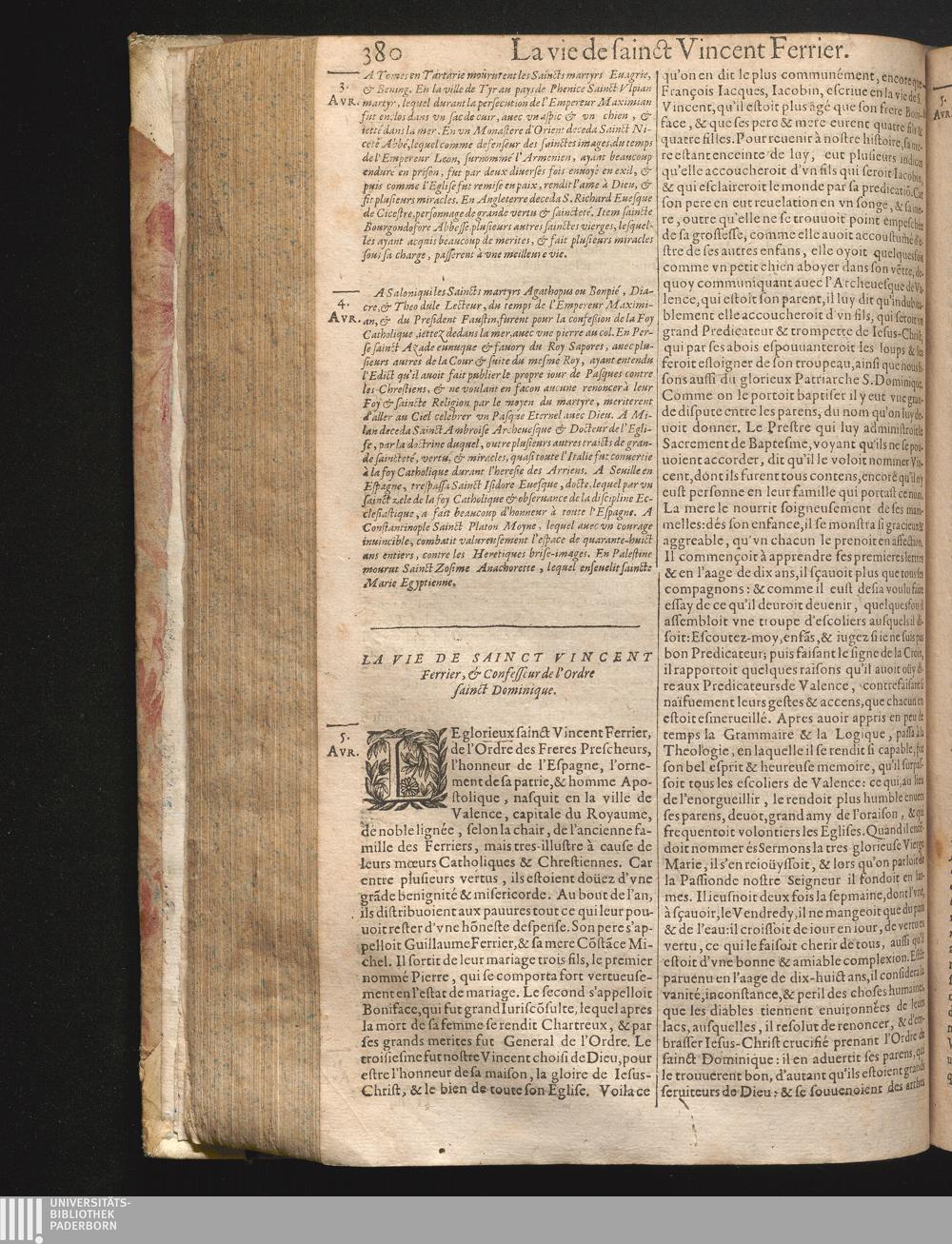 [1] (1631) Les fleurs des vies des saincts et des festes de toute l'année, suivant l'usage du calendrier Romain Reforme