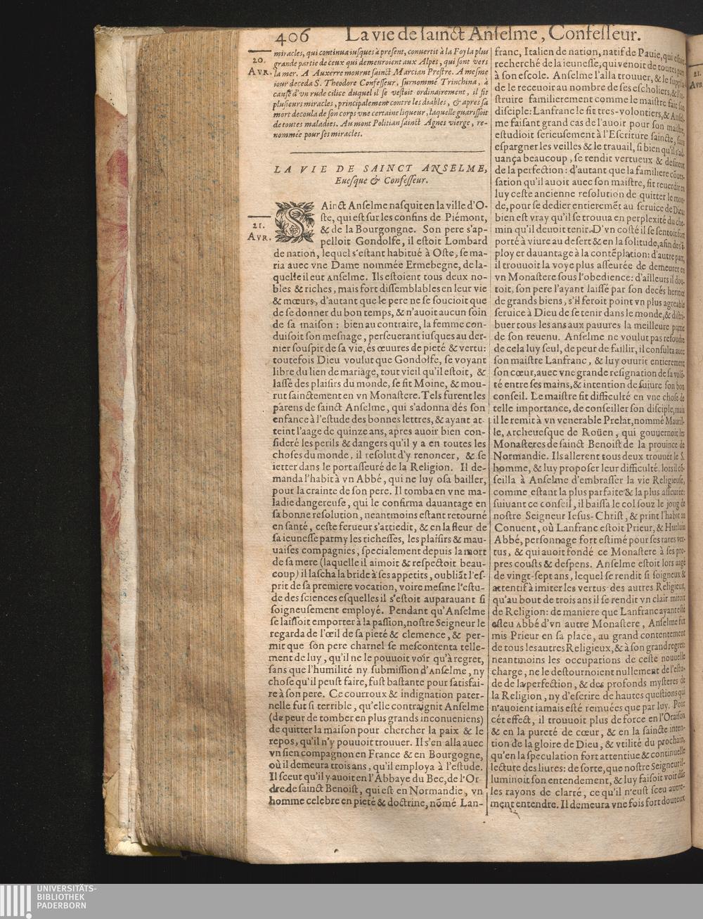 XXI La vie de sainct Anselme, Euesque.