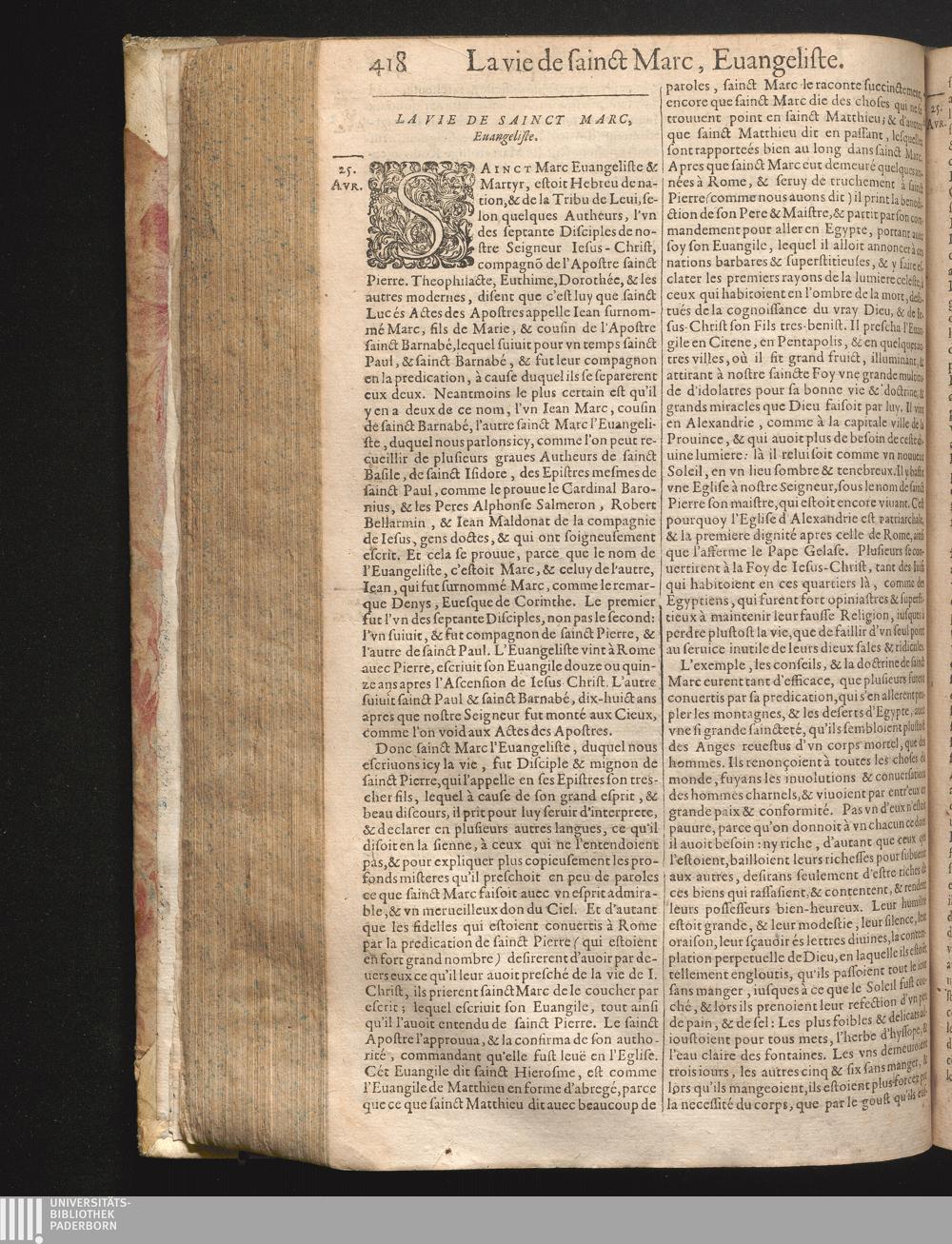 XXV La vie de sainct Marc Euangeliste.