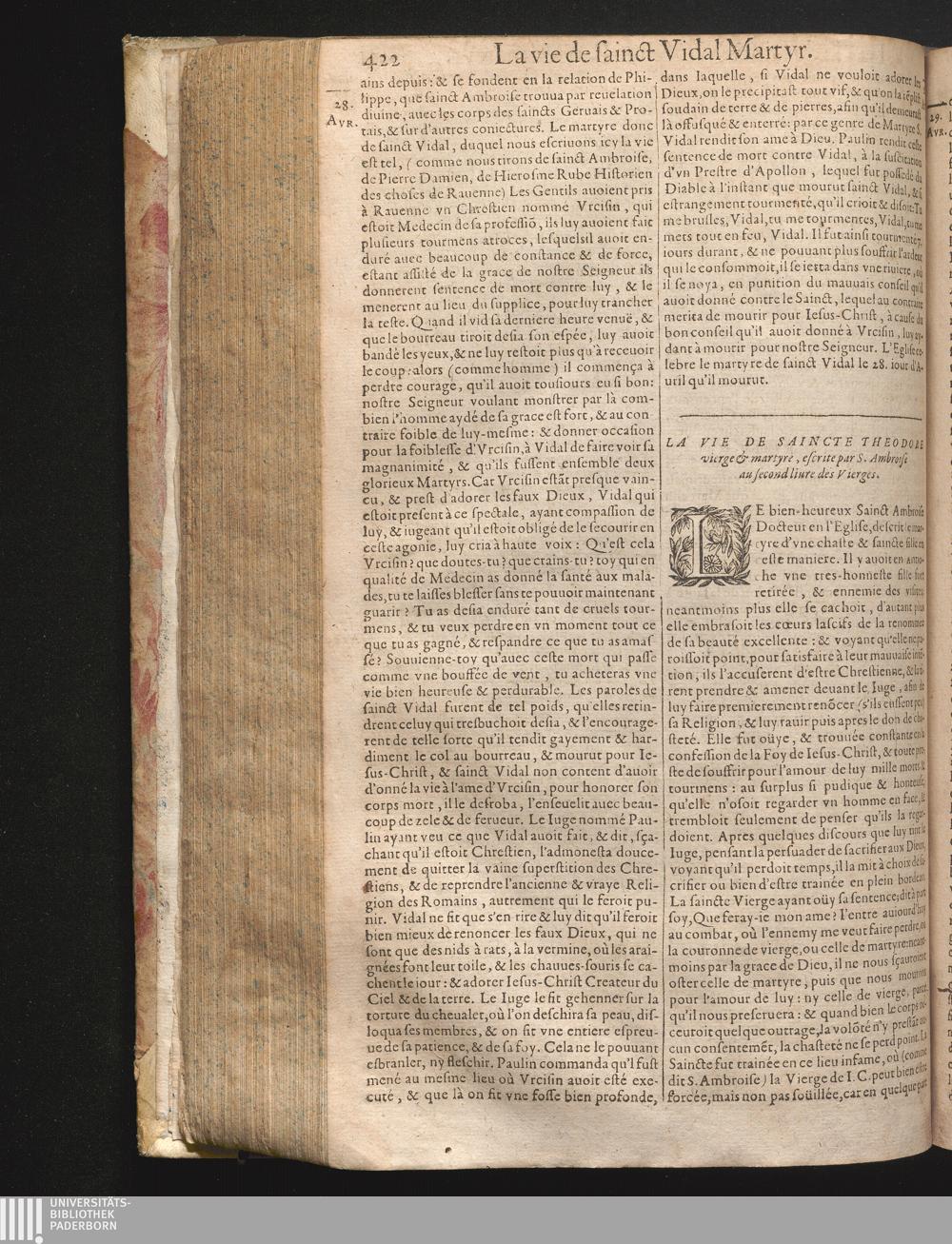 XXIX La vie de saincte Theodore, vierge & martyre.